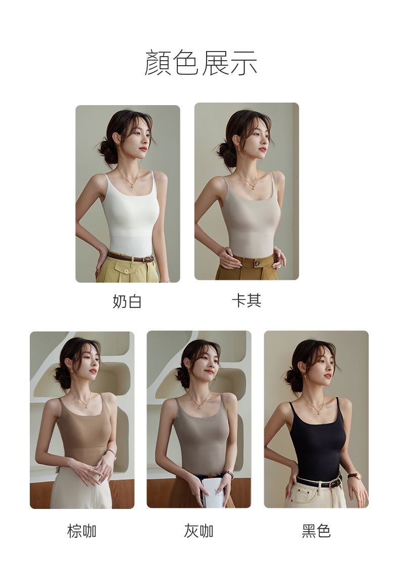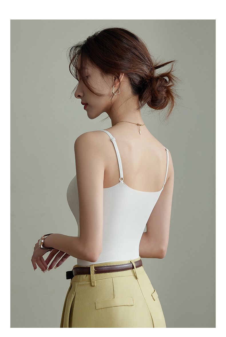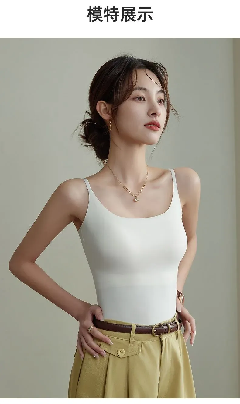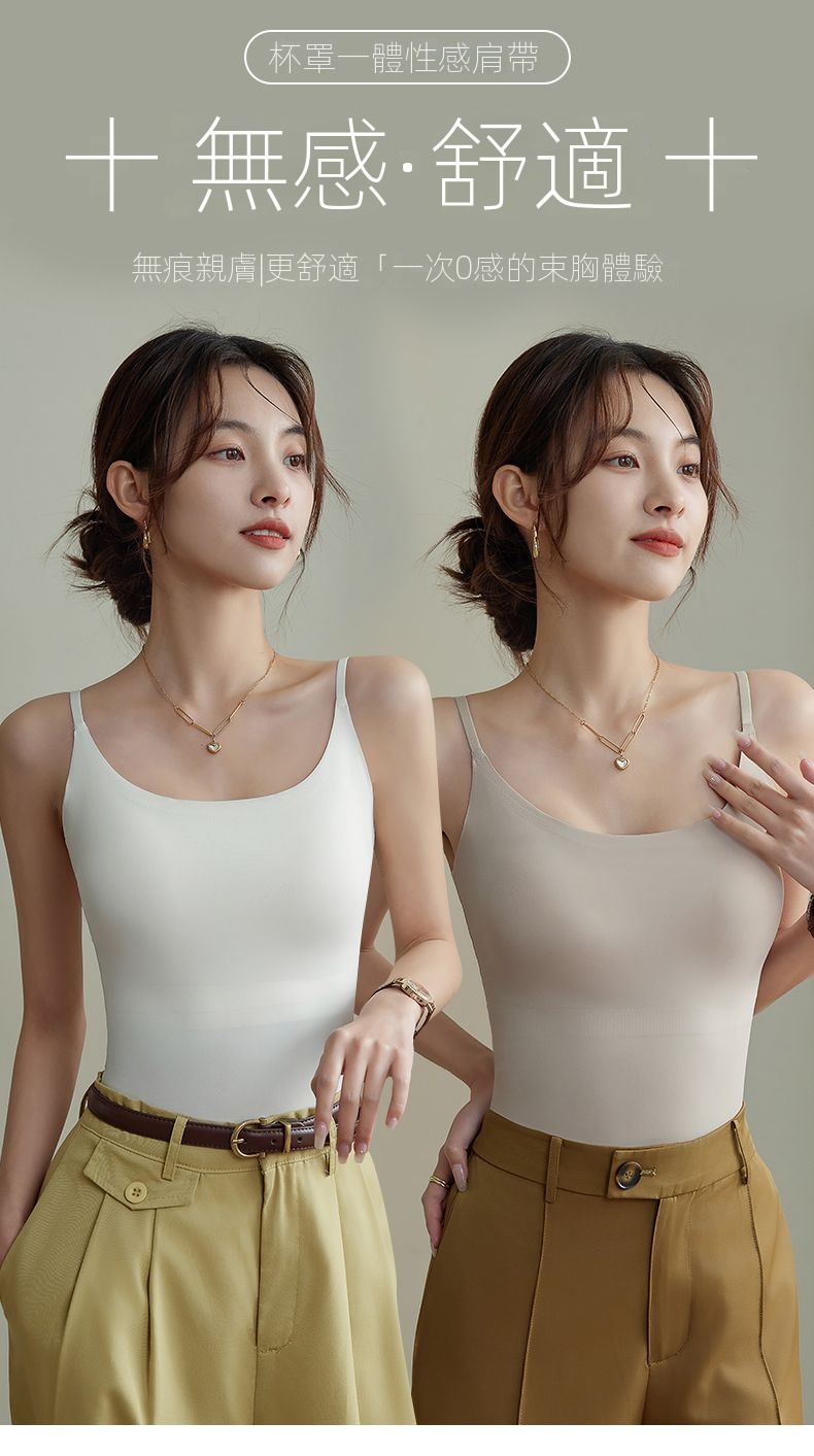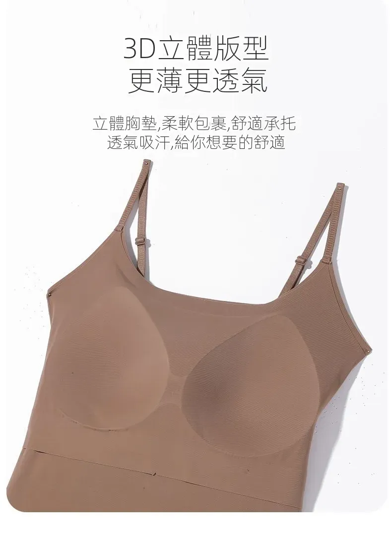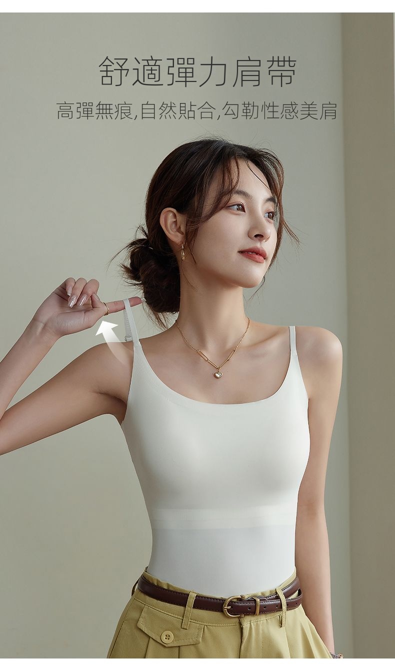 涼感薄款美背無痕打底外穿帶杯墊吊帶背心
