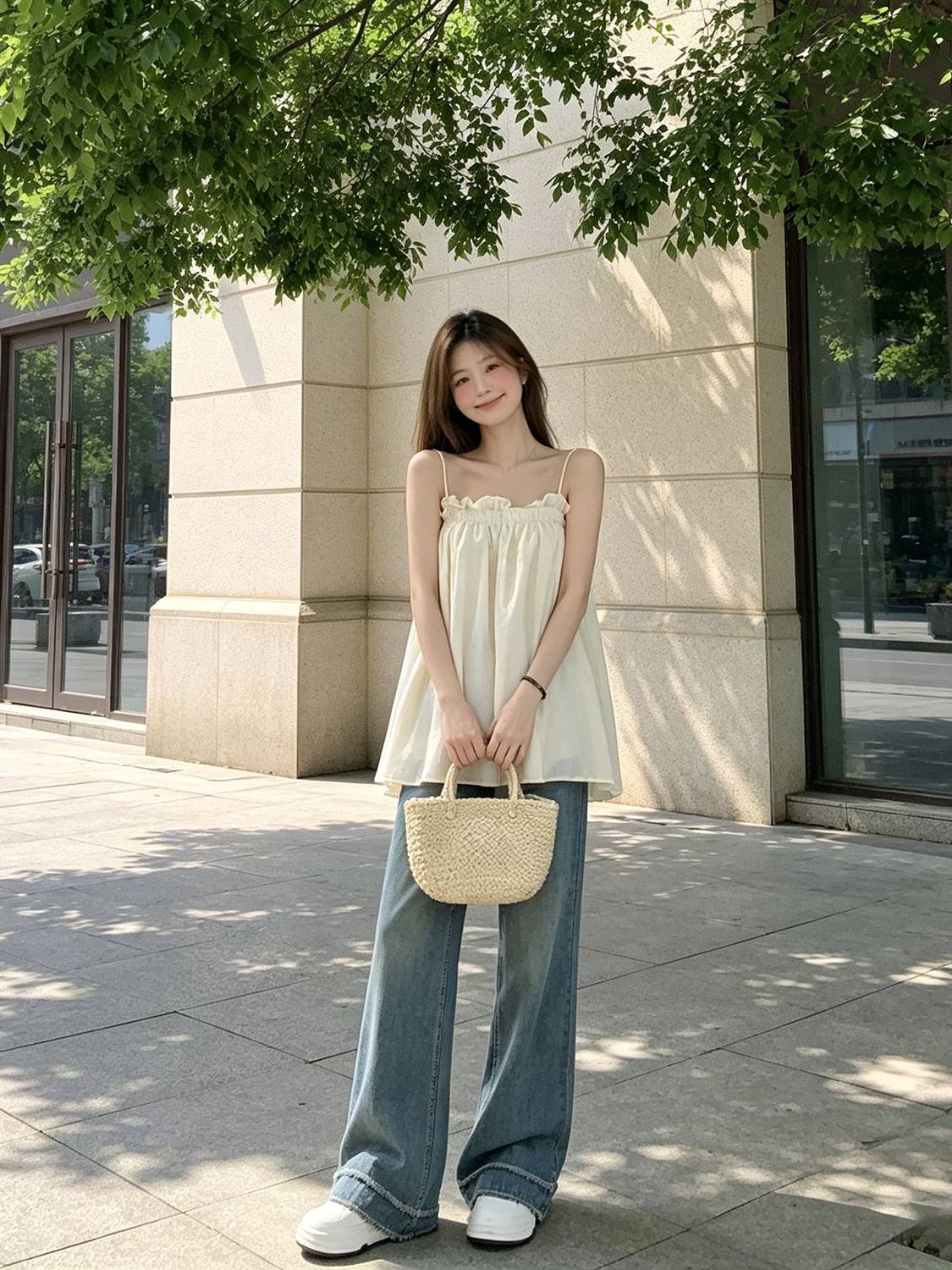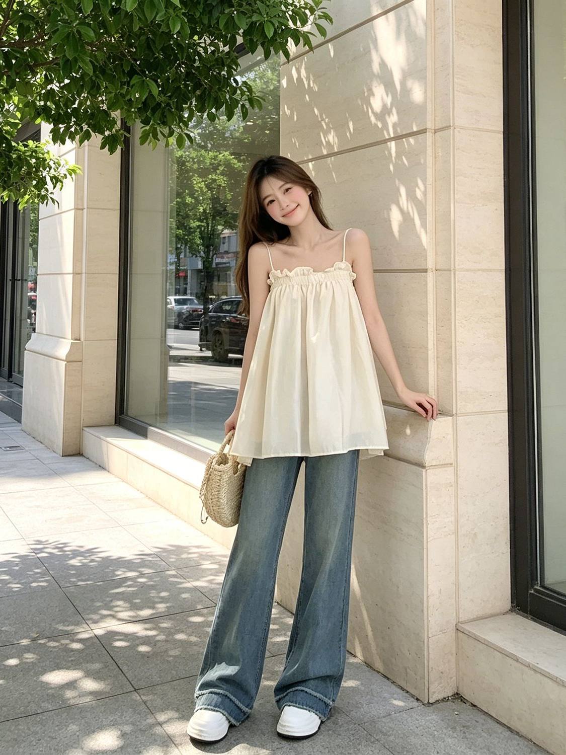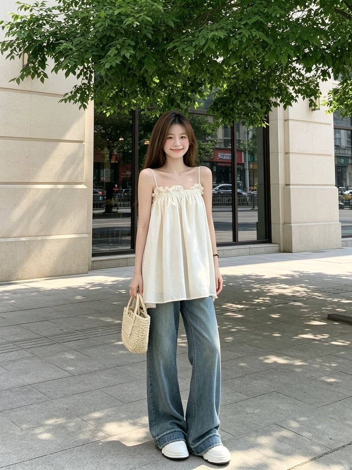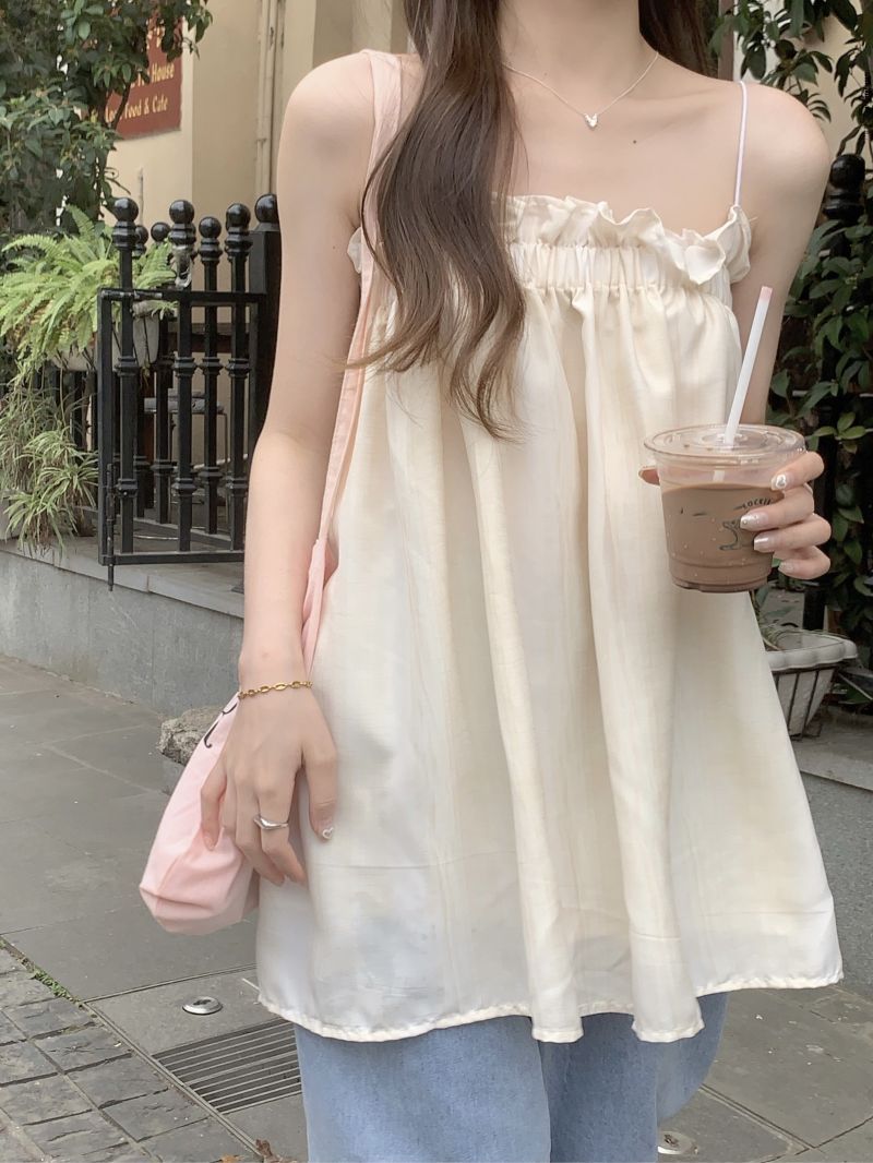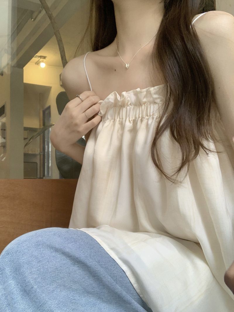 復古木耳邊洋氣百搭寬鬆抹胸吊帶背心