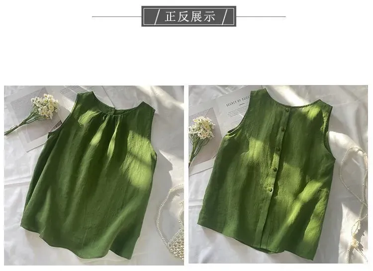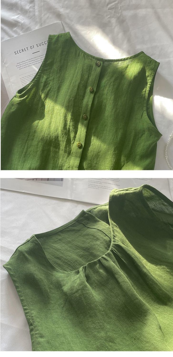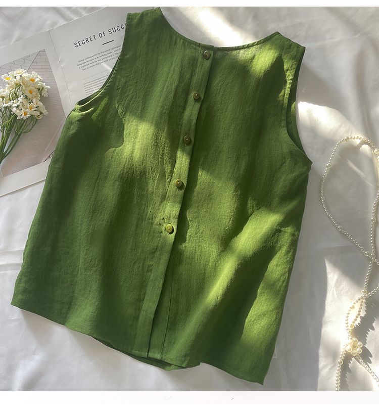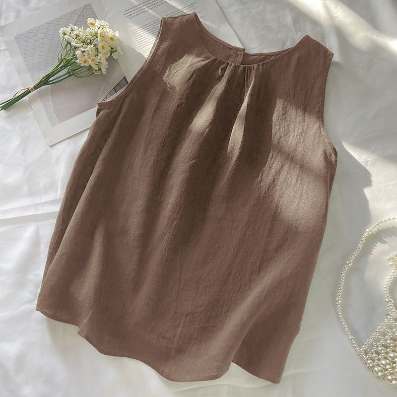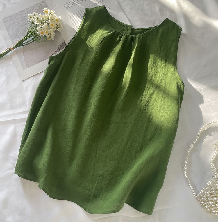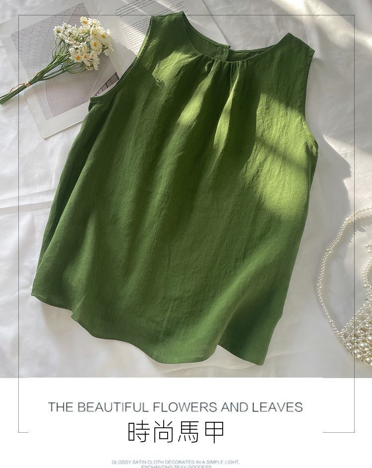 4色百搭休閒顯瘦文藝復古棉麻吊帶背心