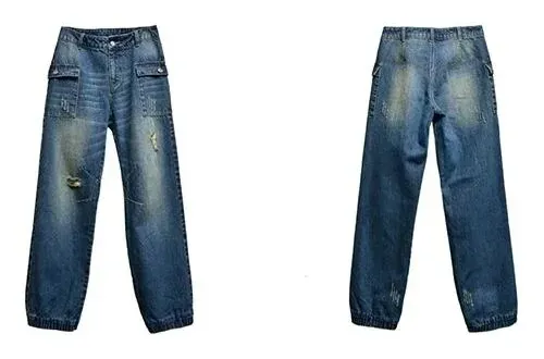 復古bf風大兜燈籠褲高腰闊腿牛仔寬鬆休閒褲裝