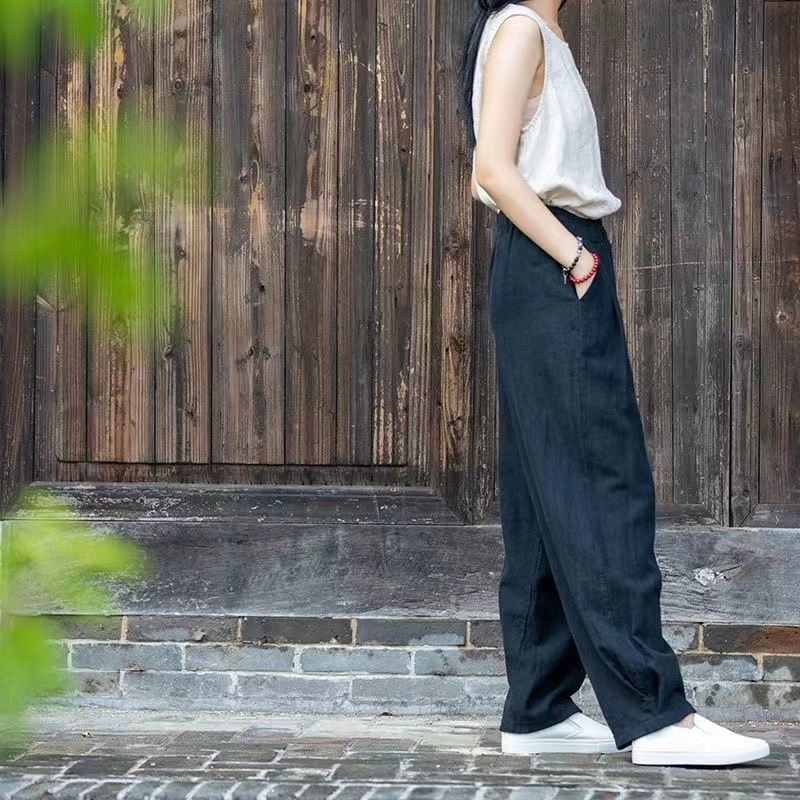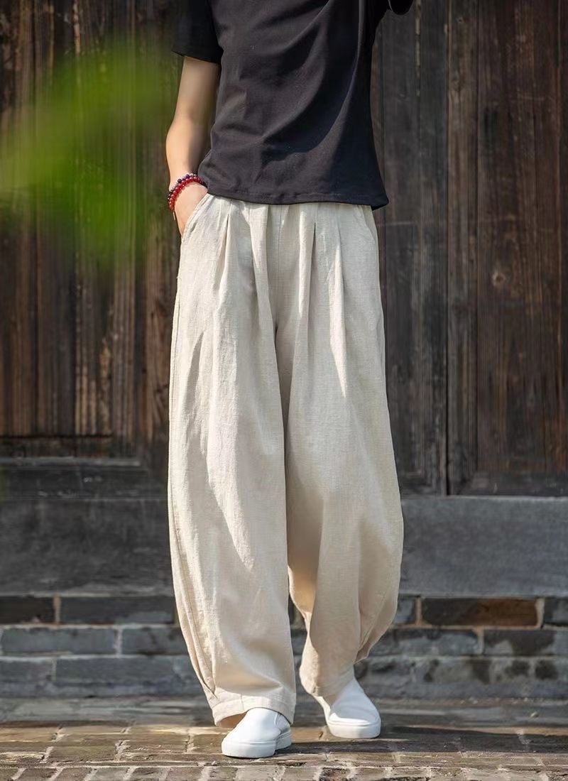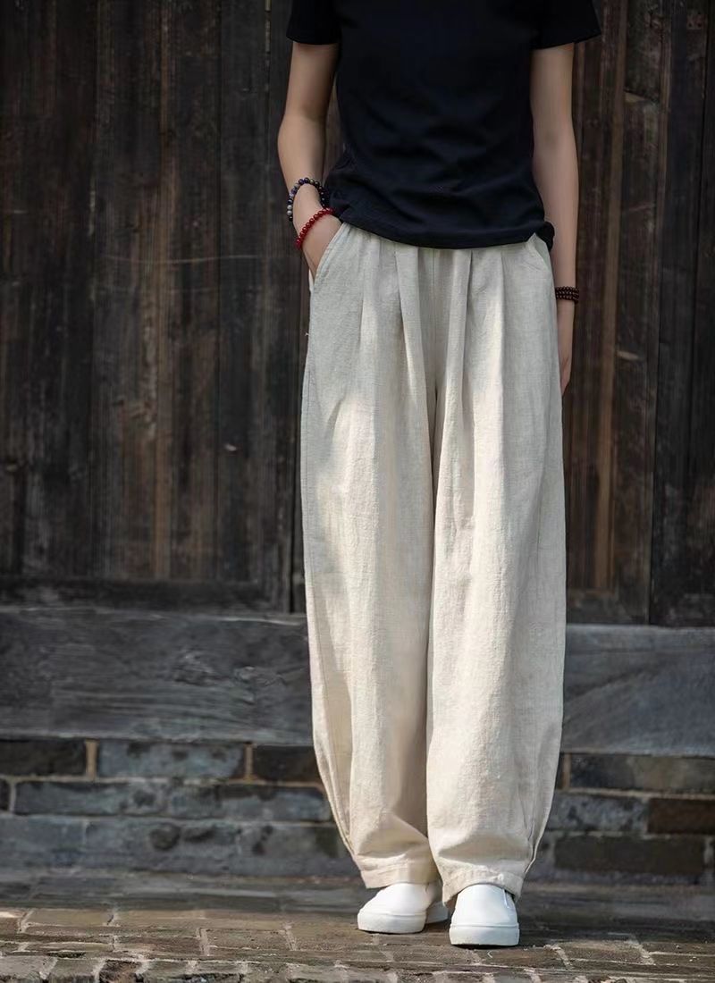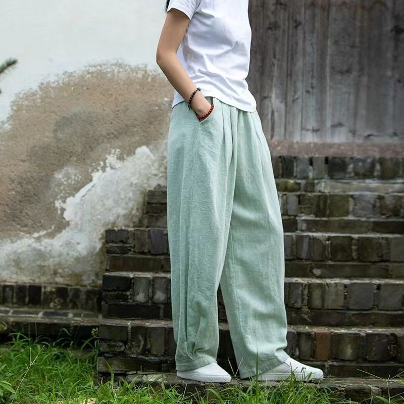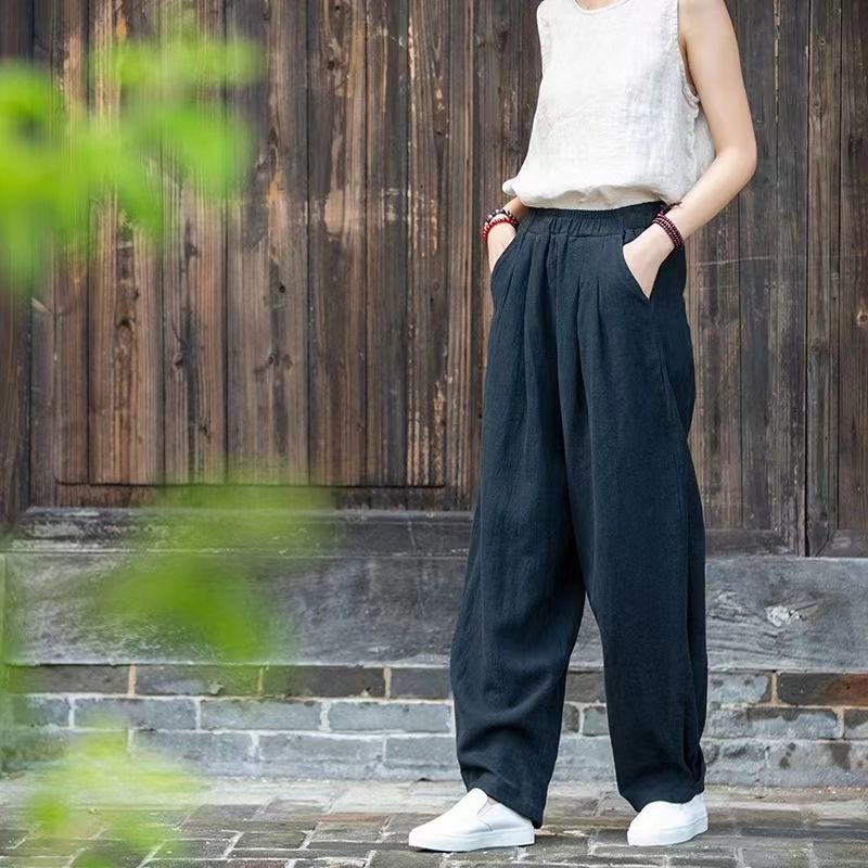 新中式文藝復古寬鬆純色棉麻燈籠褲裝