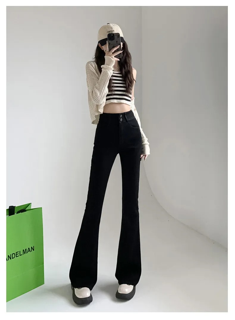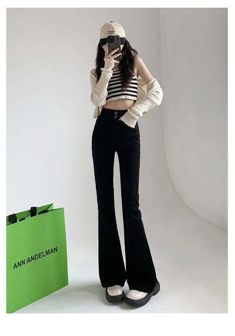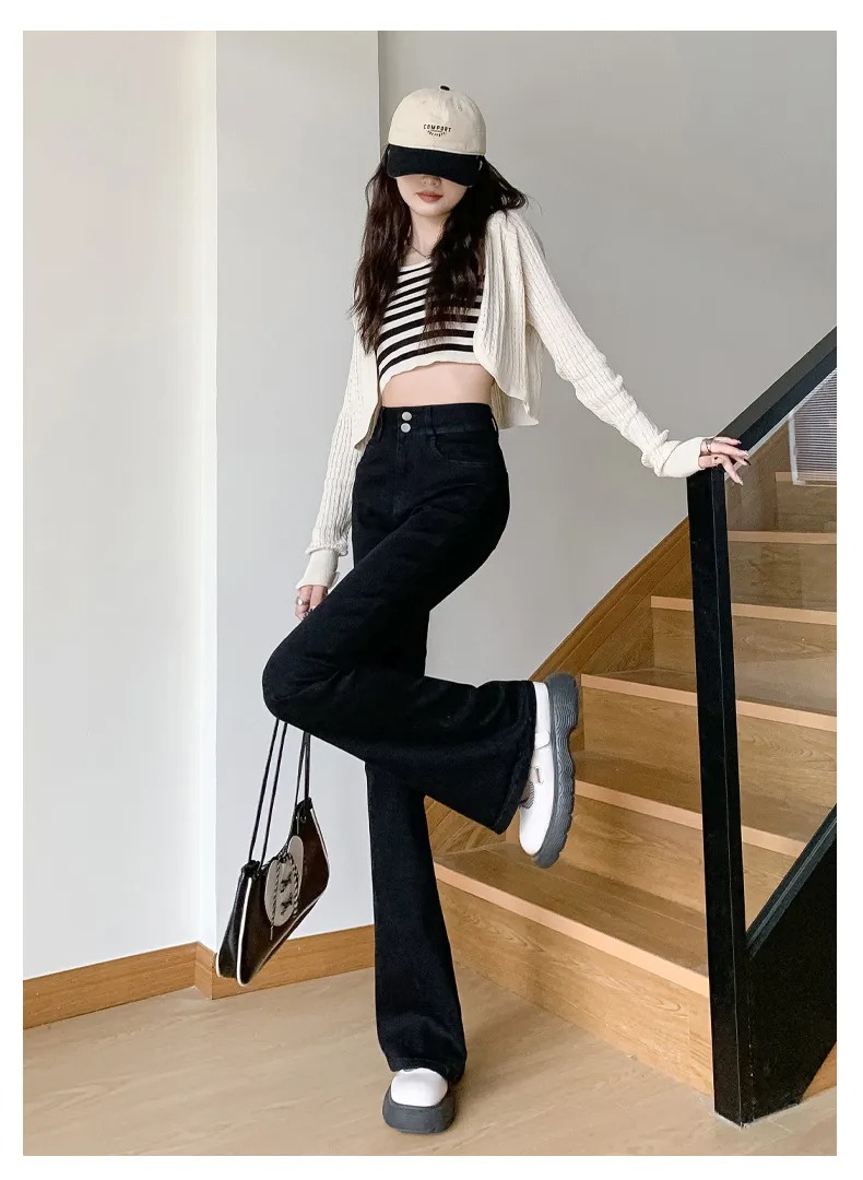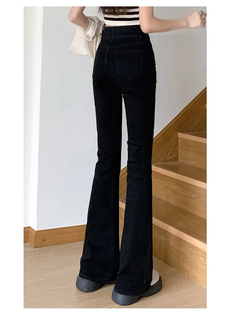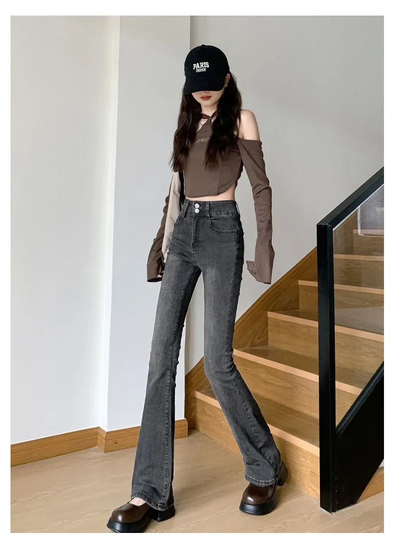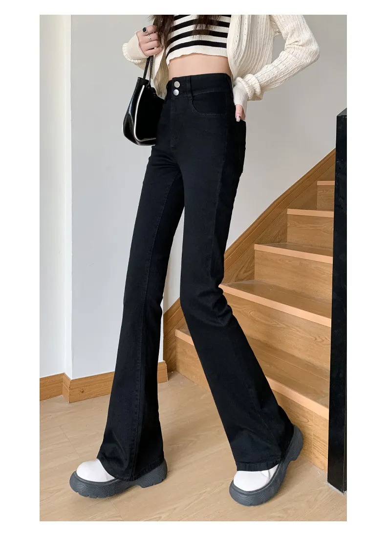 美式百搭舒適顯瘦高腰馬蹄微喇叭牛仔褲
