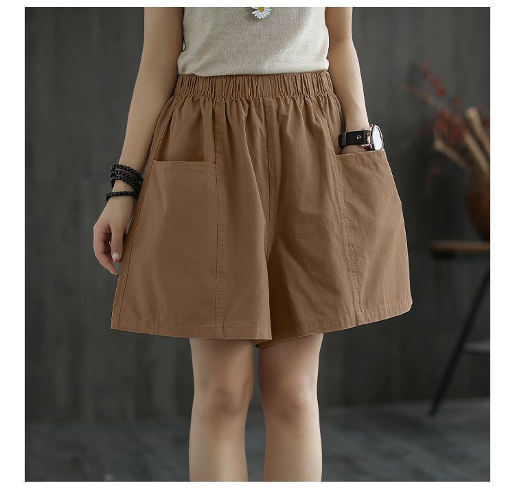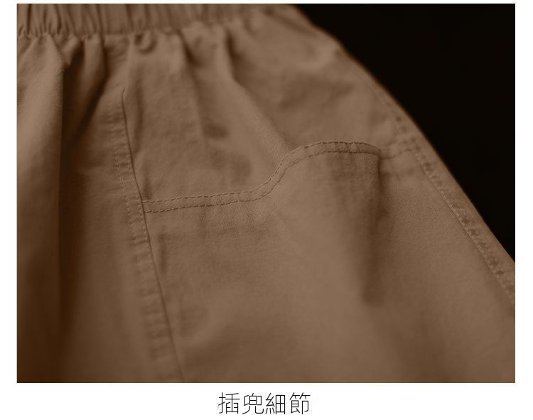 純棉百搭寬鬆顯瘦直筒闊腿鬆緊腰五分短褲-Cicimode