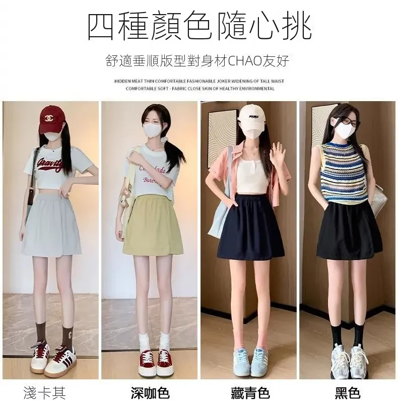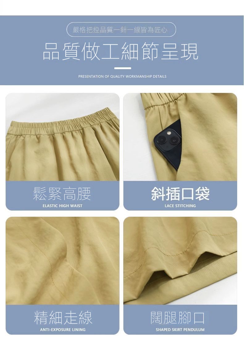 薄款休閒冰絲運動風山本工裝寬鬆闊腿五分裙褲-Cicimode