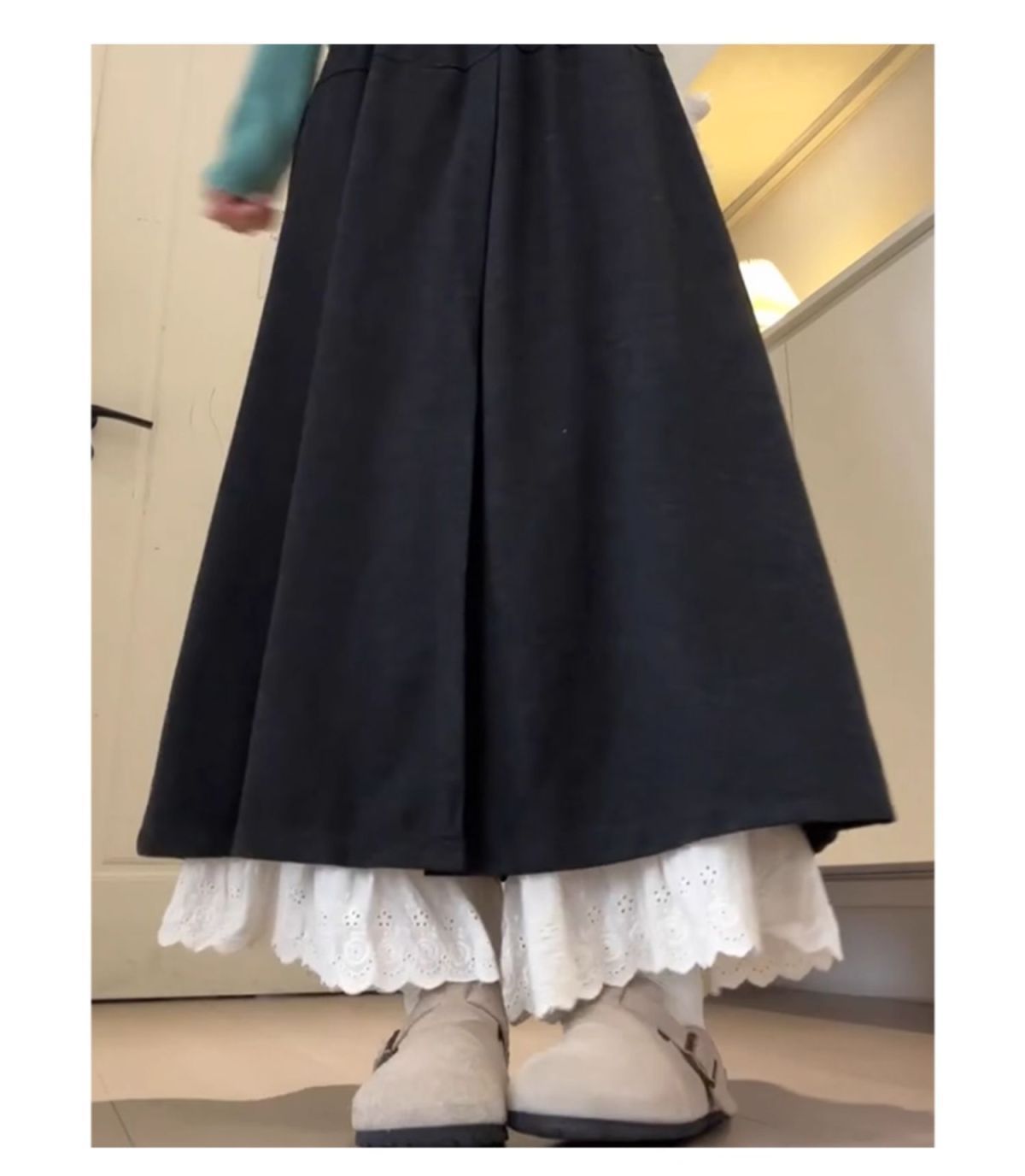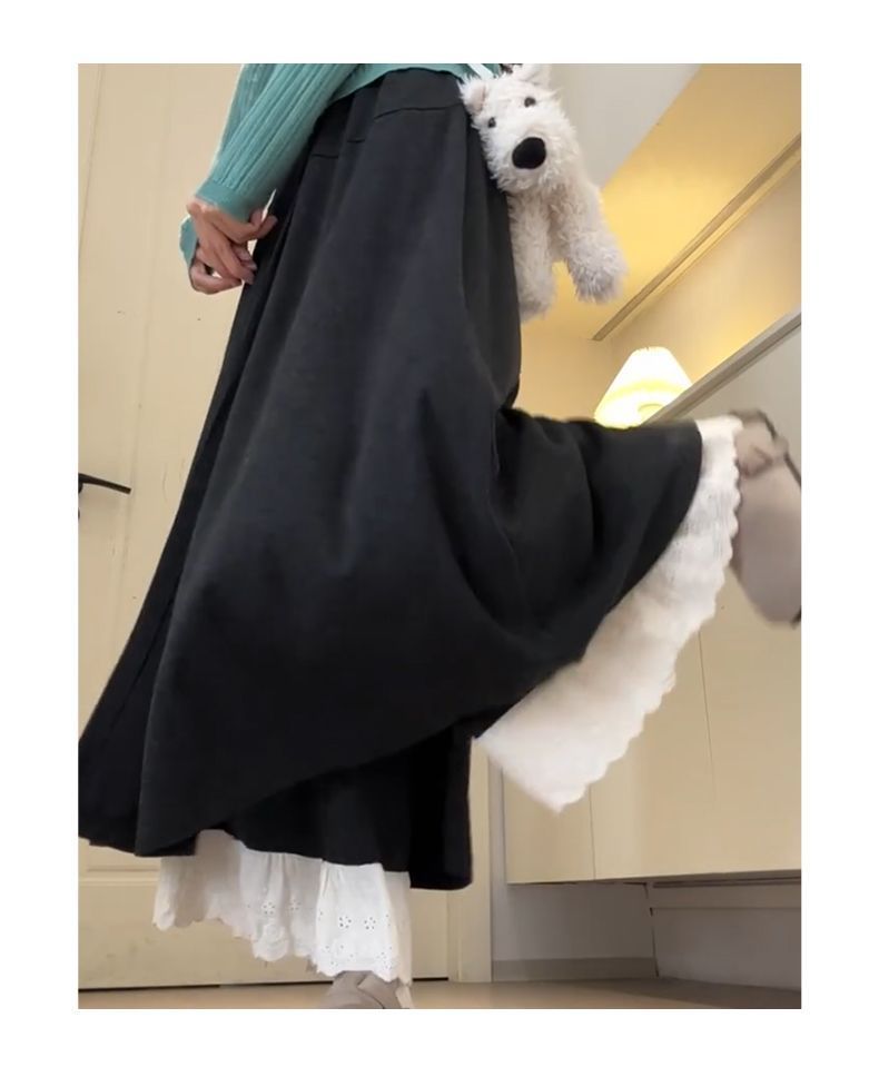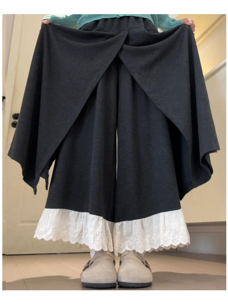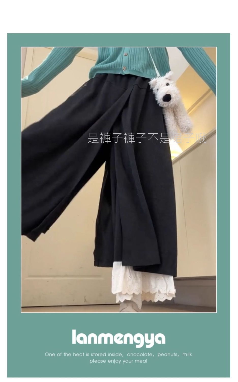 拼接蕾絲花邊百搭高腰寬鬆闊腿顯瘦A字裙褲