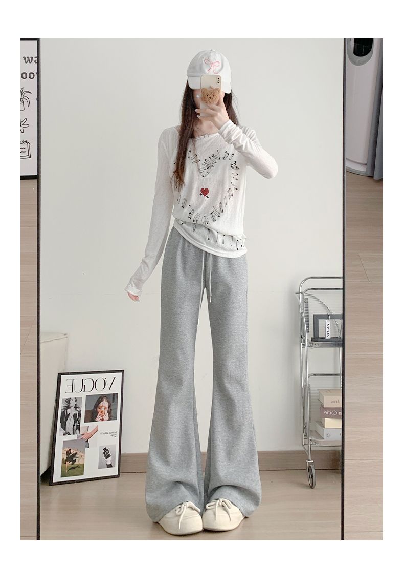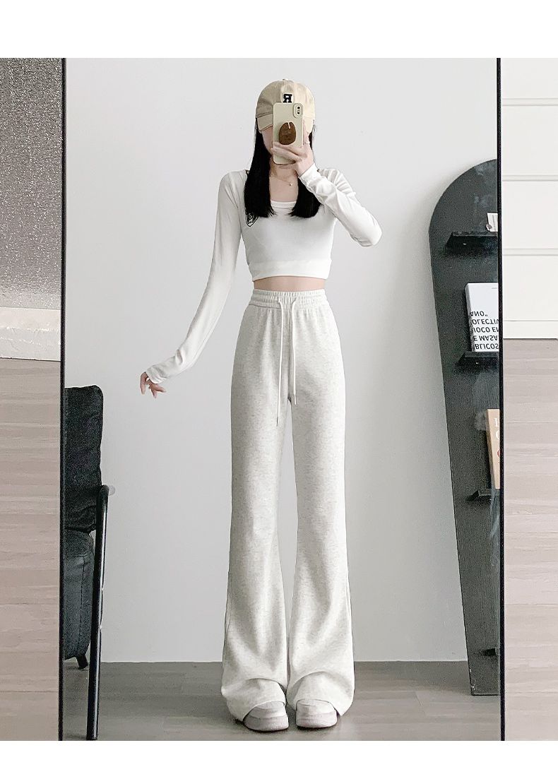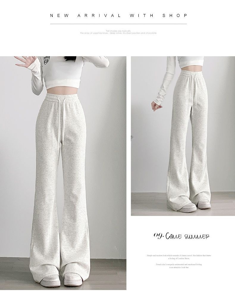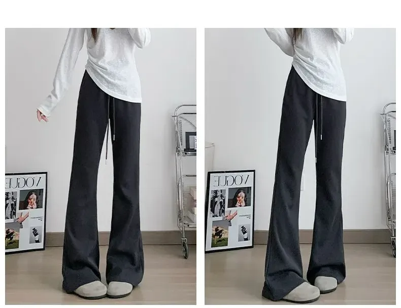美式休閒高腰顯瘦修身垂感微喇運動褲