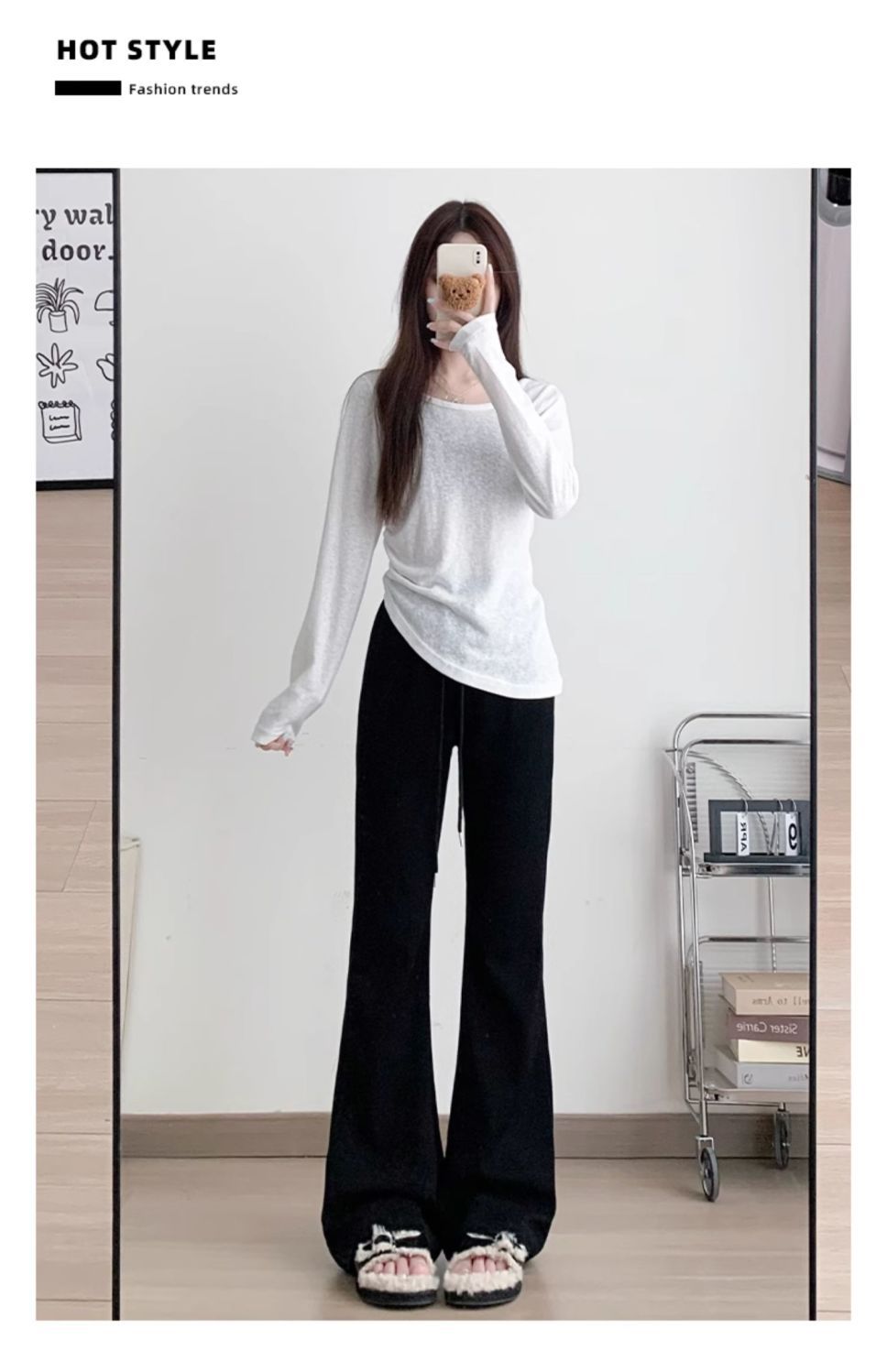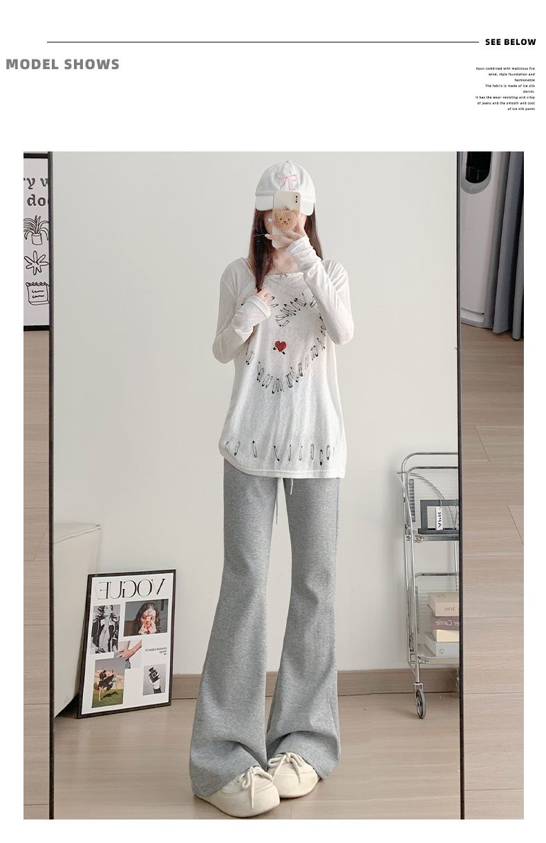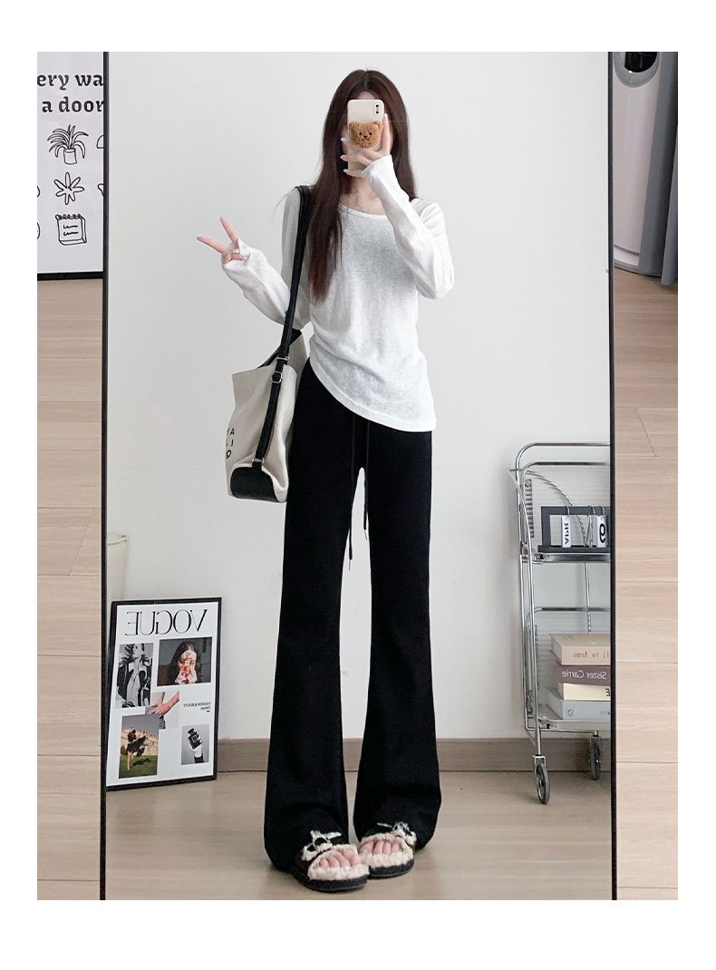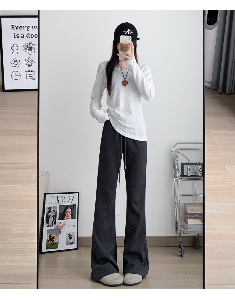 美式休閒高腰顯瘦修身垂感微喇運動褲