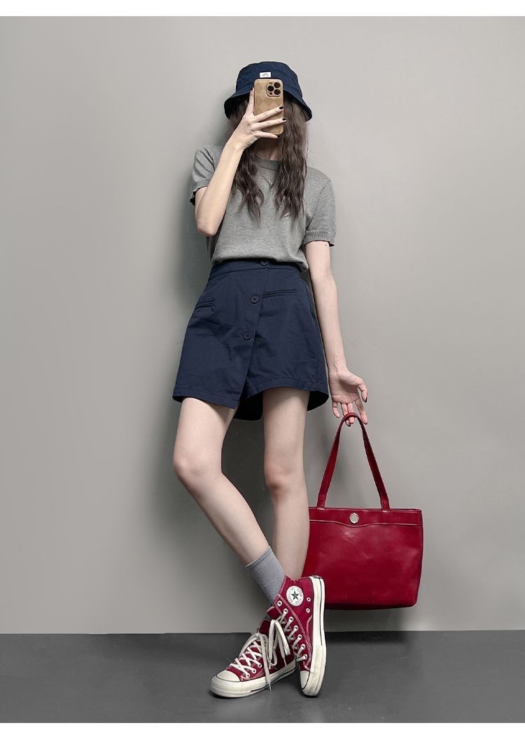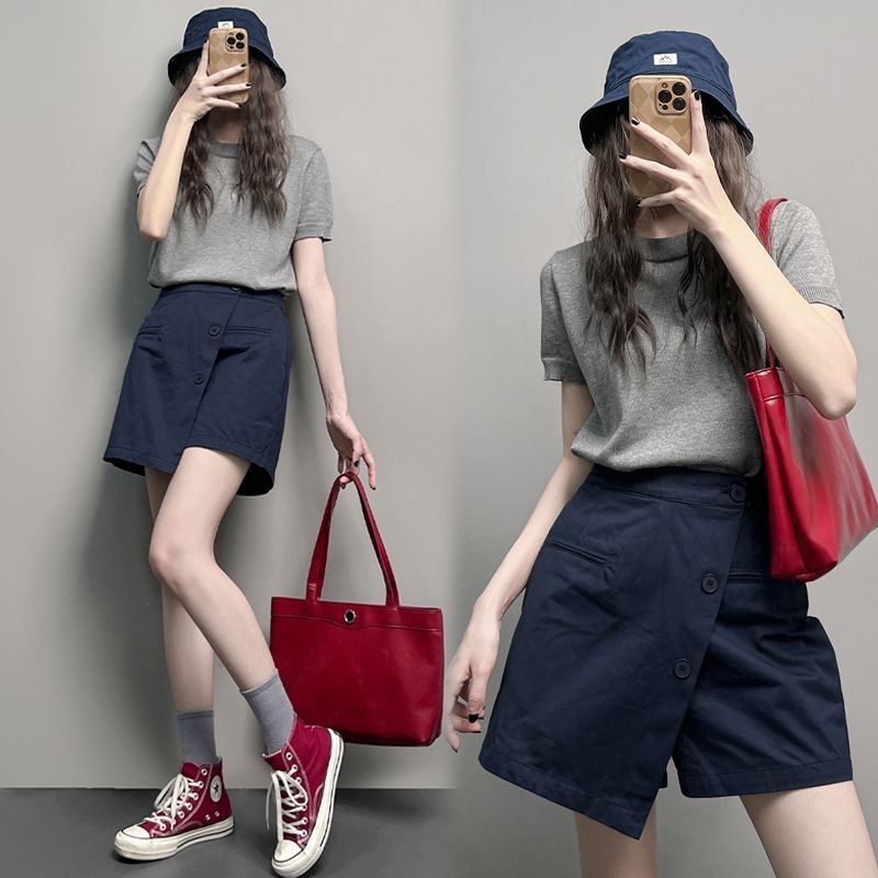 【整套】鹽系小香風時尚顯瘦顯高短袖+短褲兩件套裝