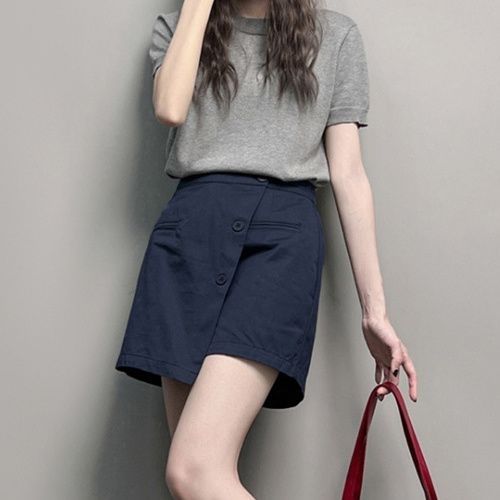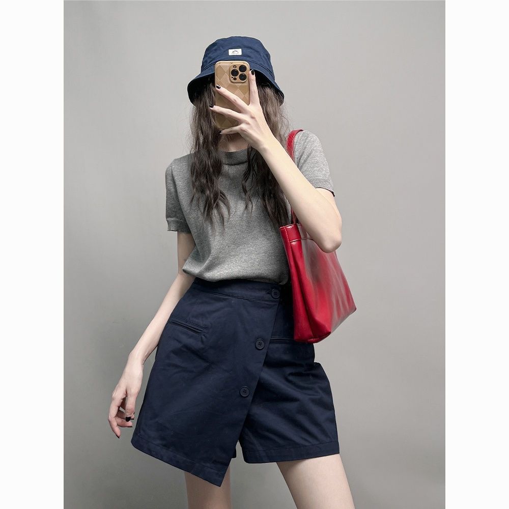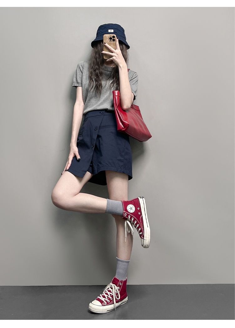 【單件/套裝】時尚顯瘦氣質設計感V領短袖+休閑短褲兩件套