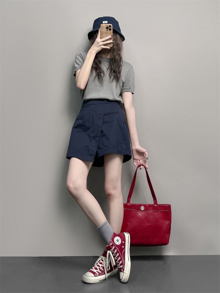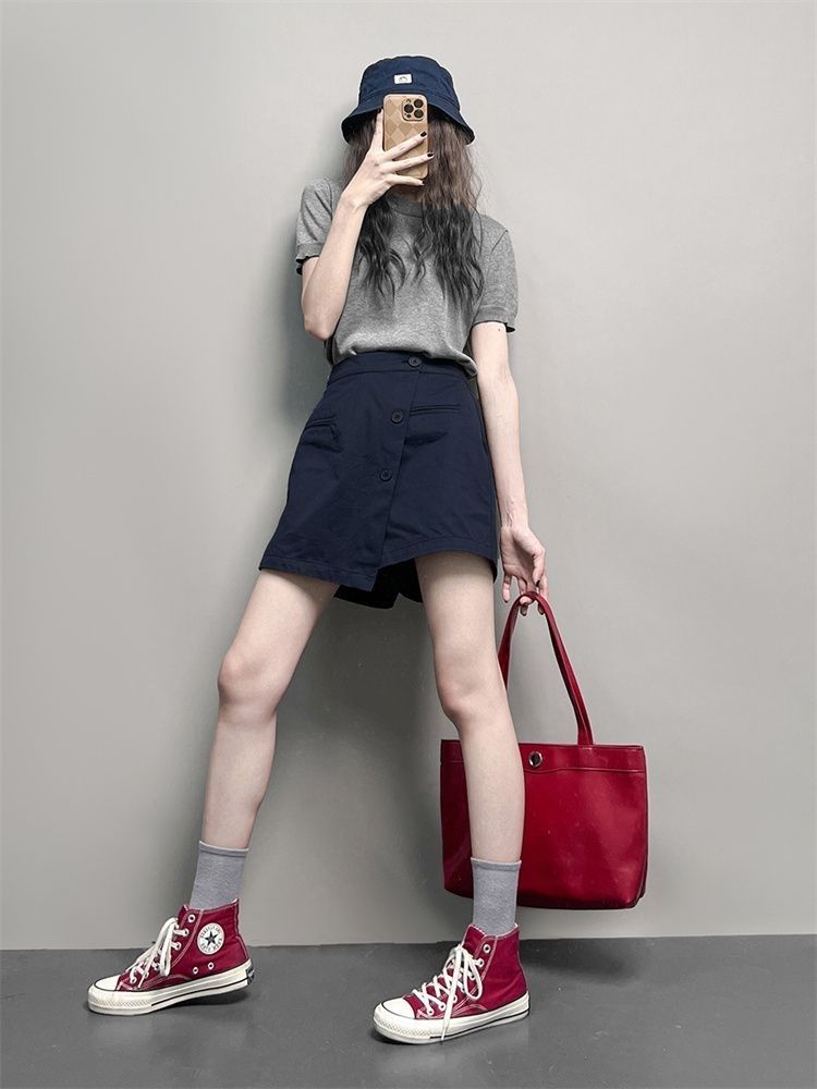 美式休閒運動寬鬆顯瘦鬆緊腰防走光工裝半身短裙