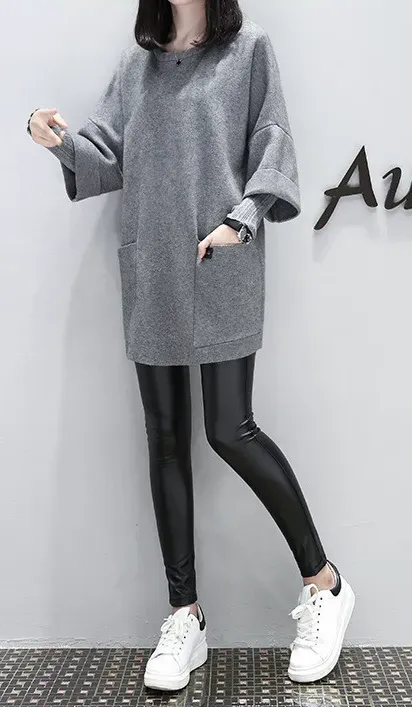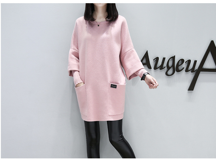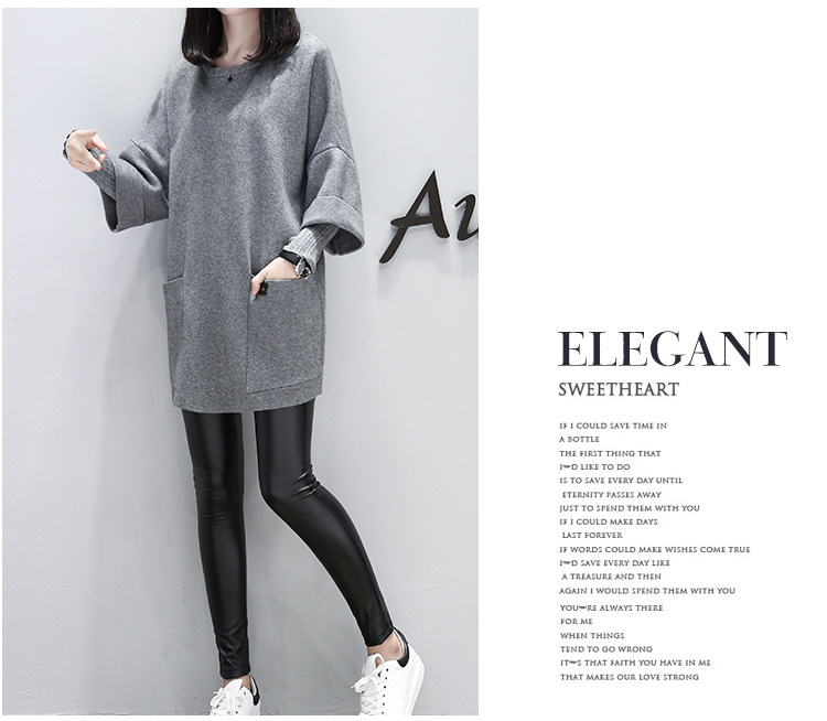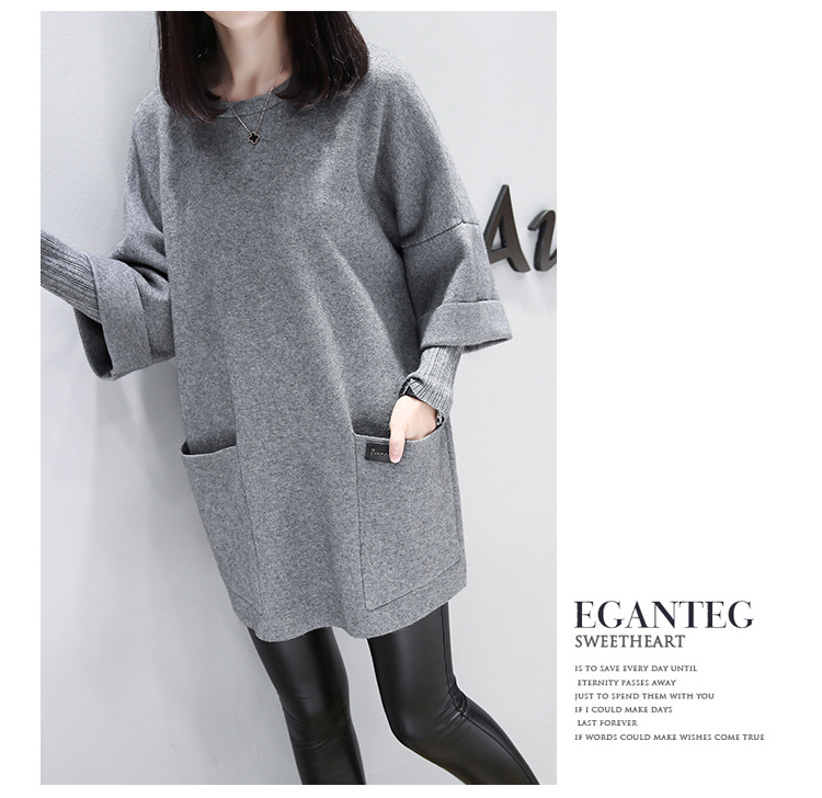 休閒時尚寬鬆拼接長袖大口袋長款圓領衛衣