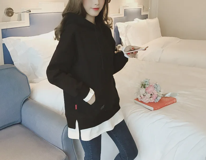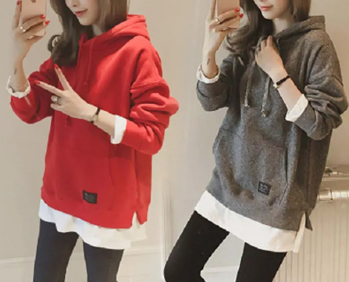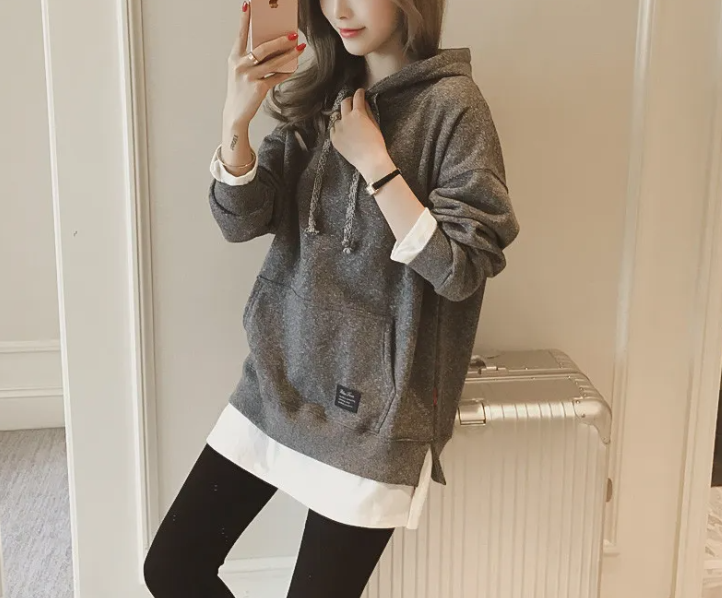 寬鬆連帽衛衣套頭打底外套假兩件衛衣