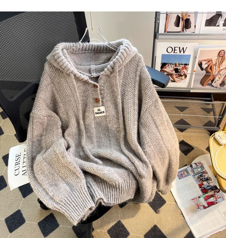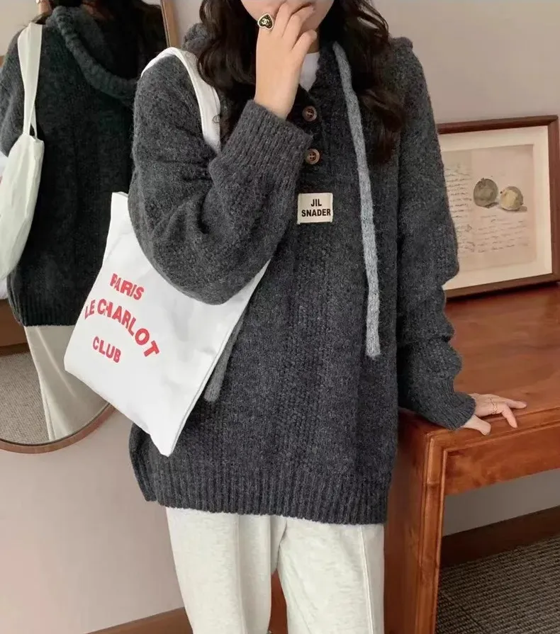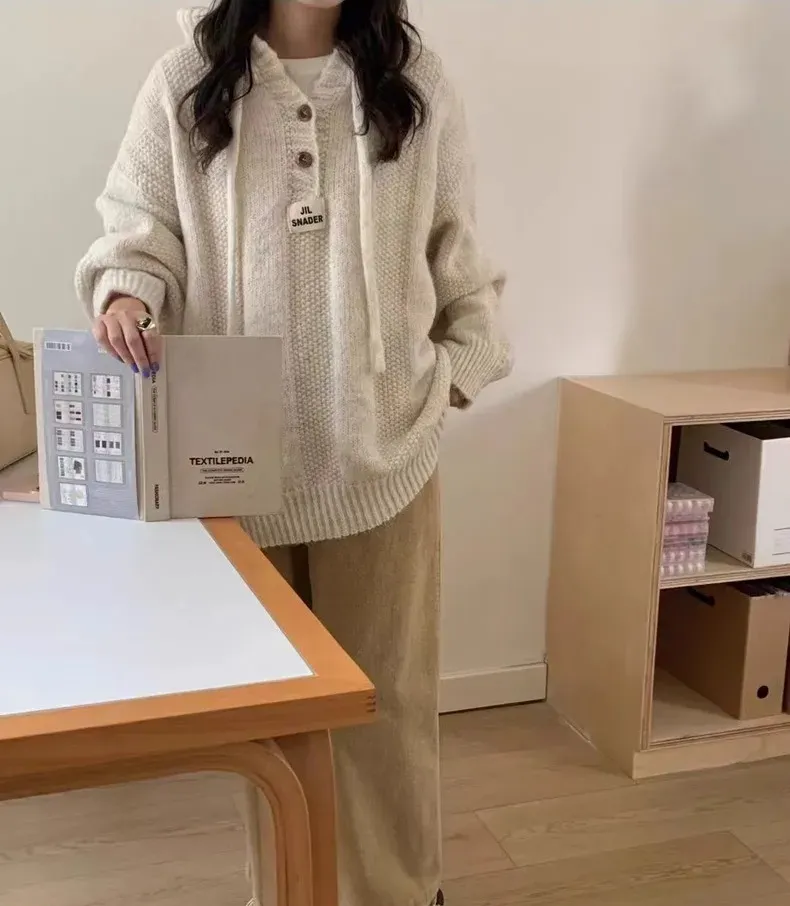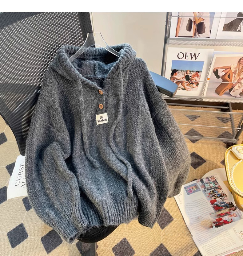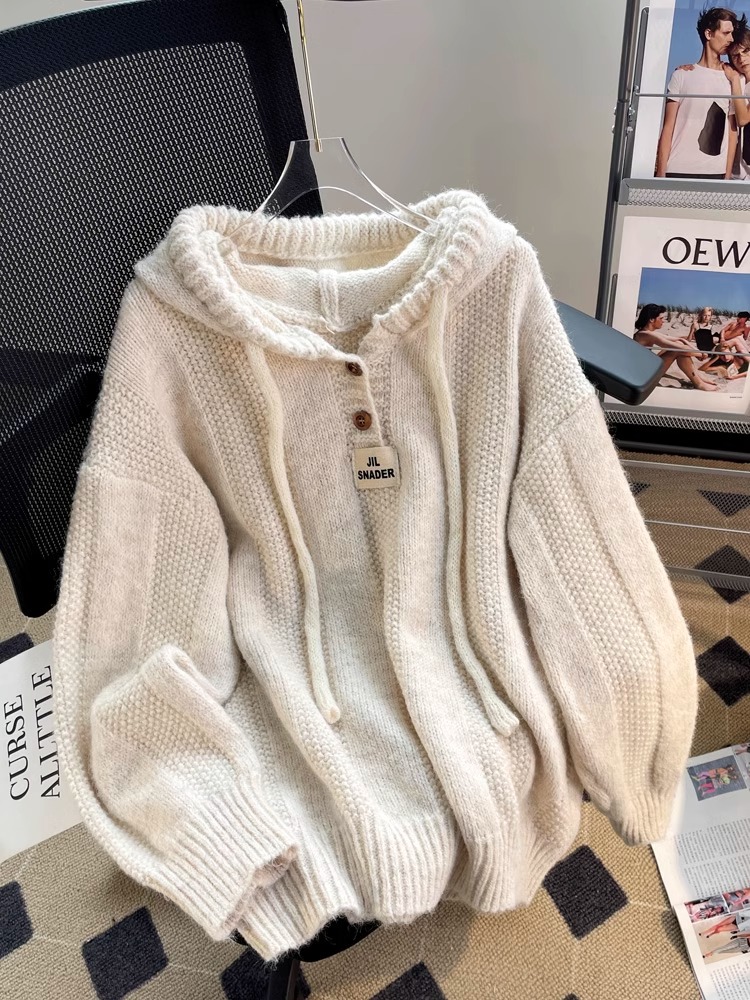 慵懶風軟糯百搭氛圍感連帽抽繩針織衛衣