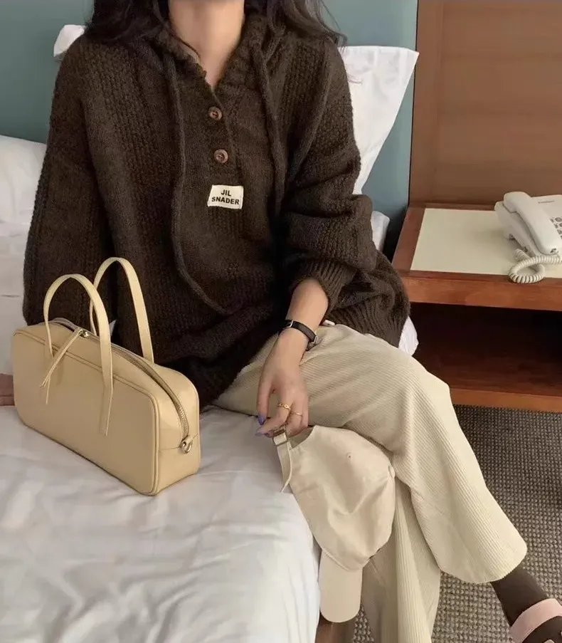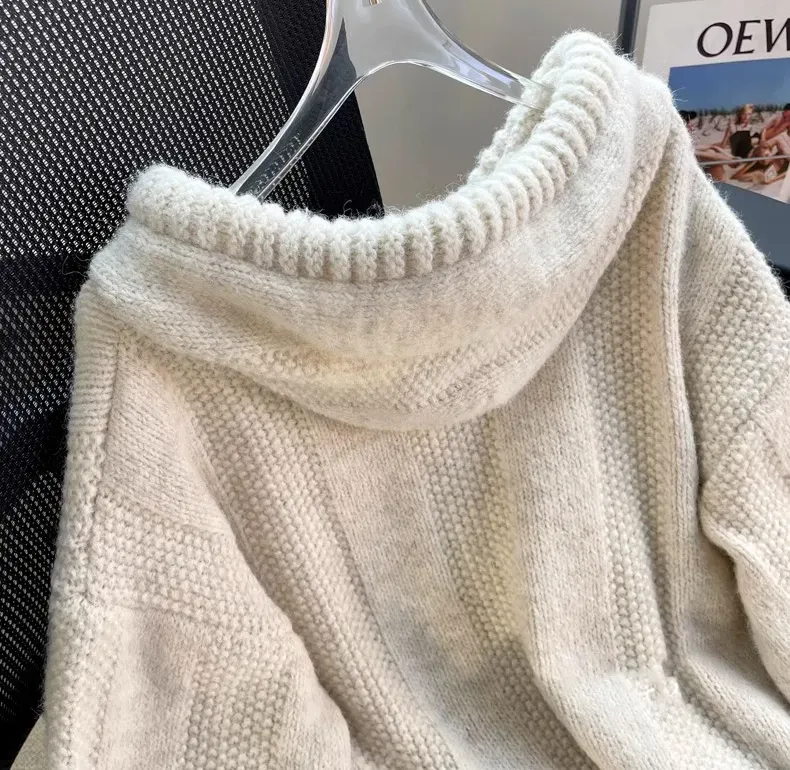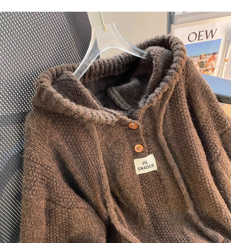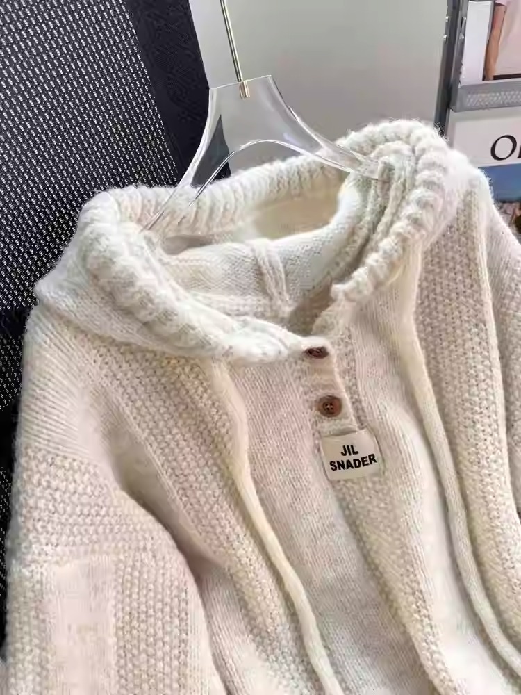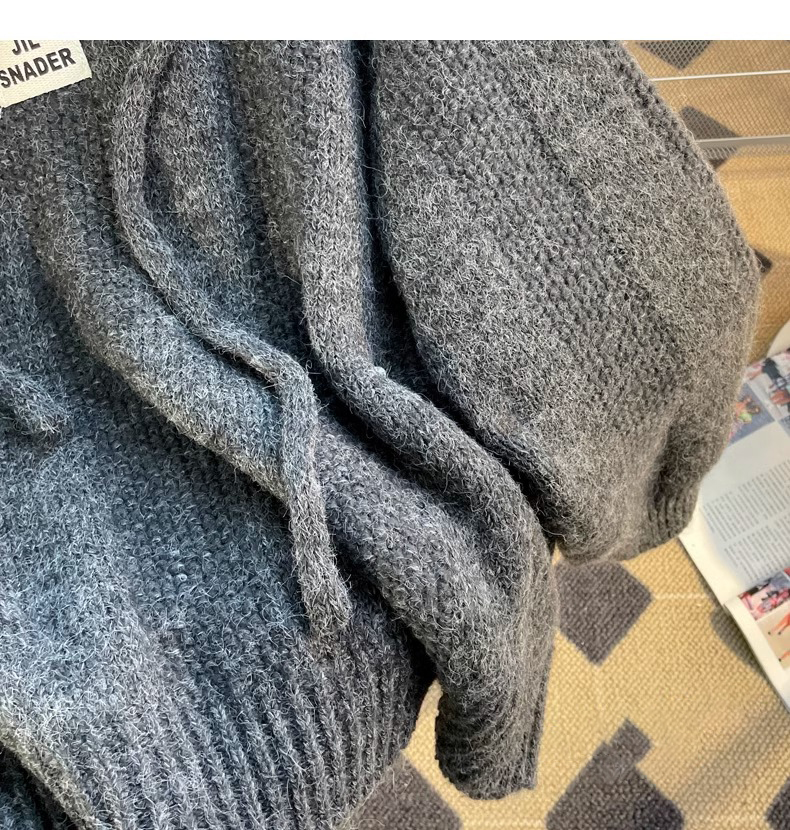 慵懶風軟糯百搭氛圍感連帽抽繩針織衛衣