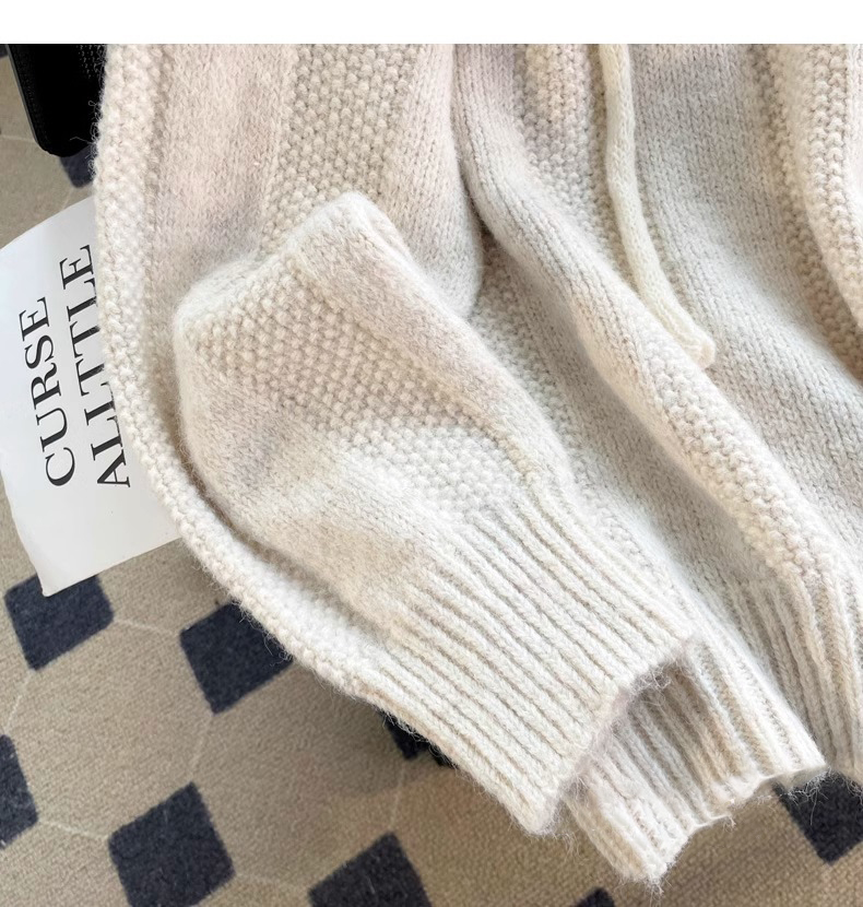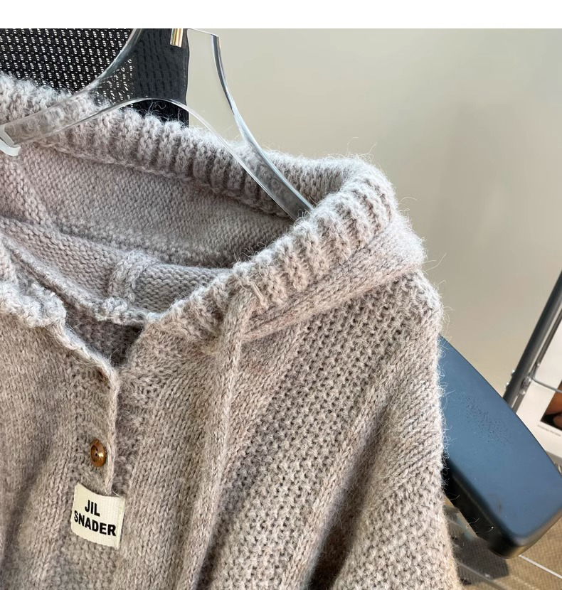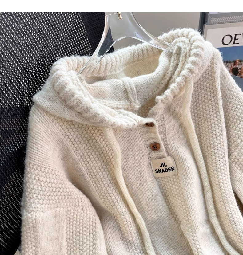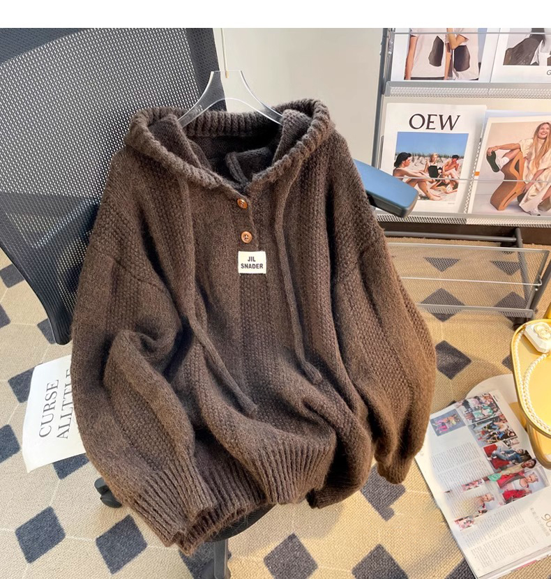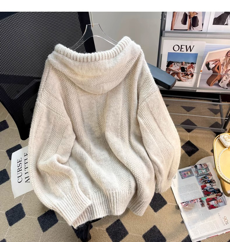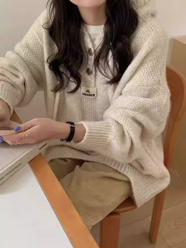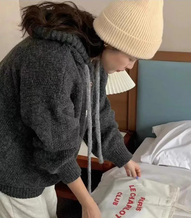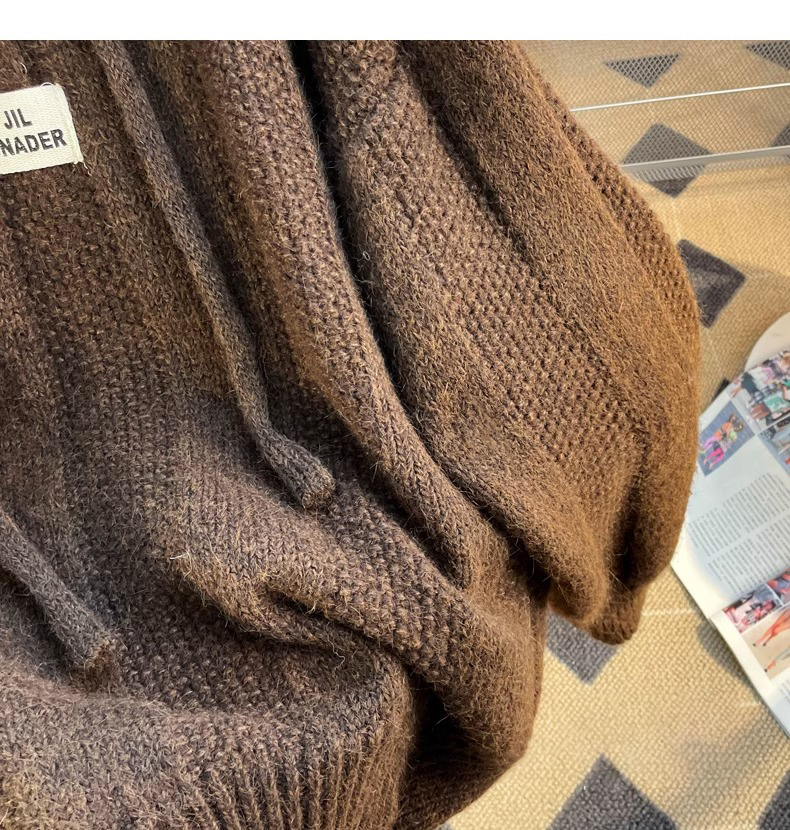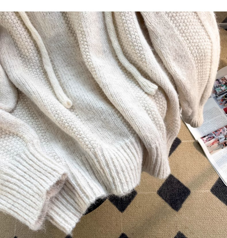 慵懶風軟糯百搭氛圍感連帽抽繩針織衛衣-Cicimode