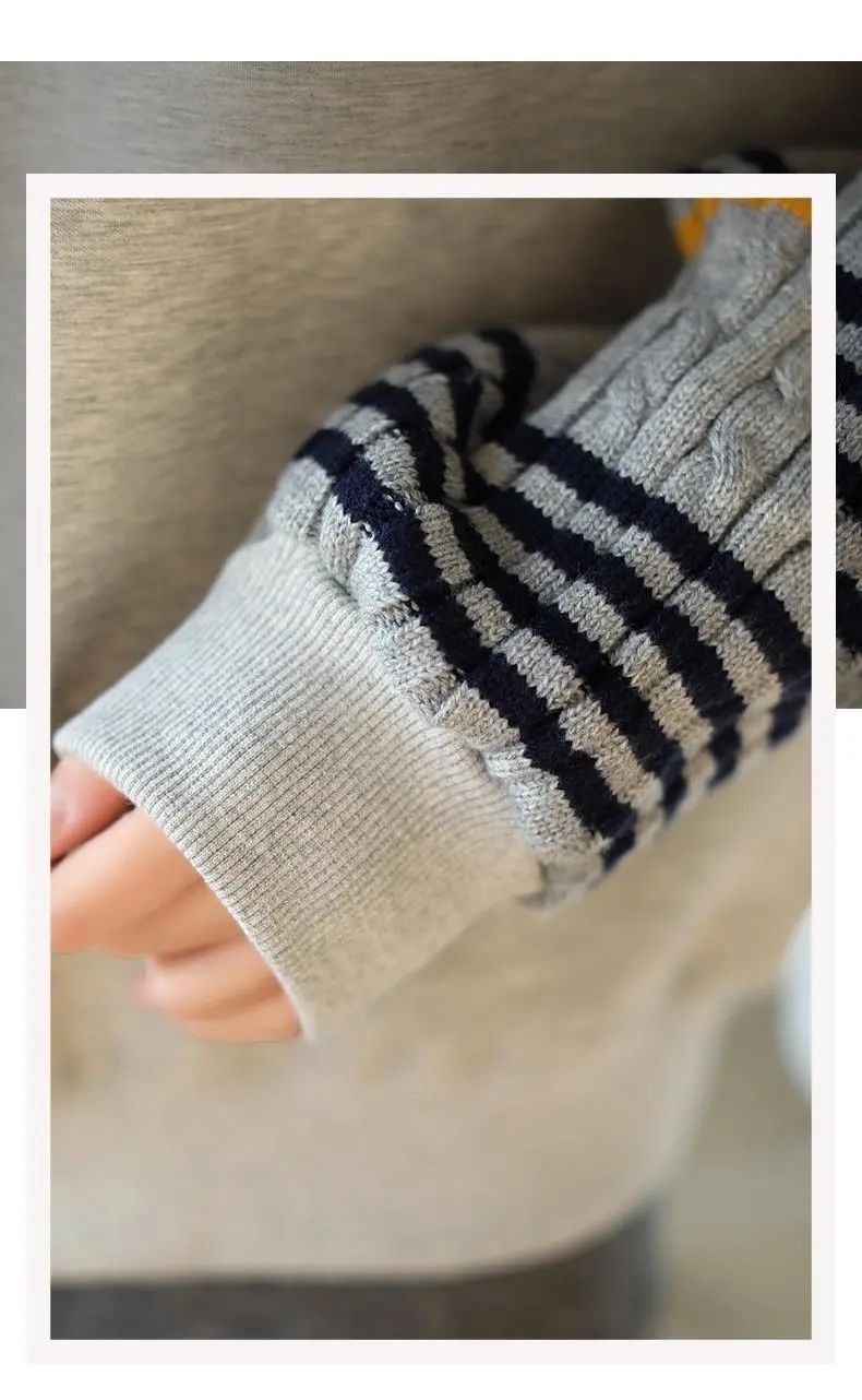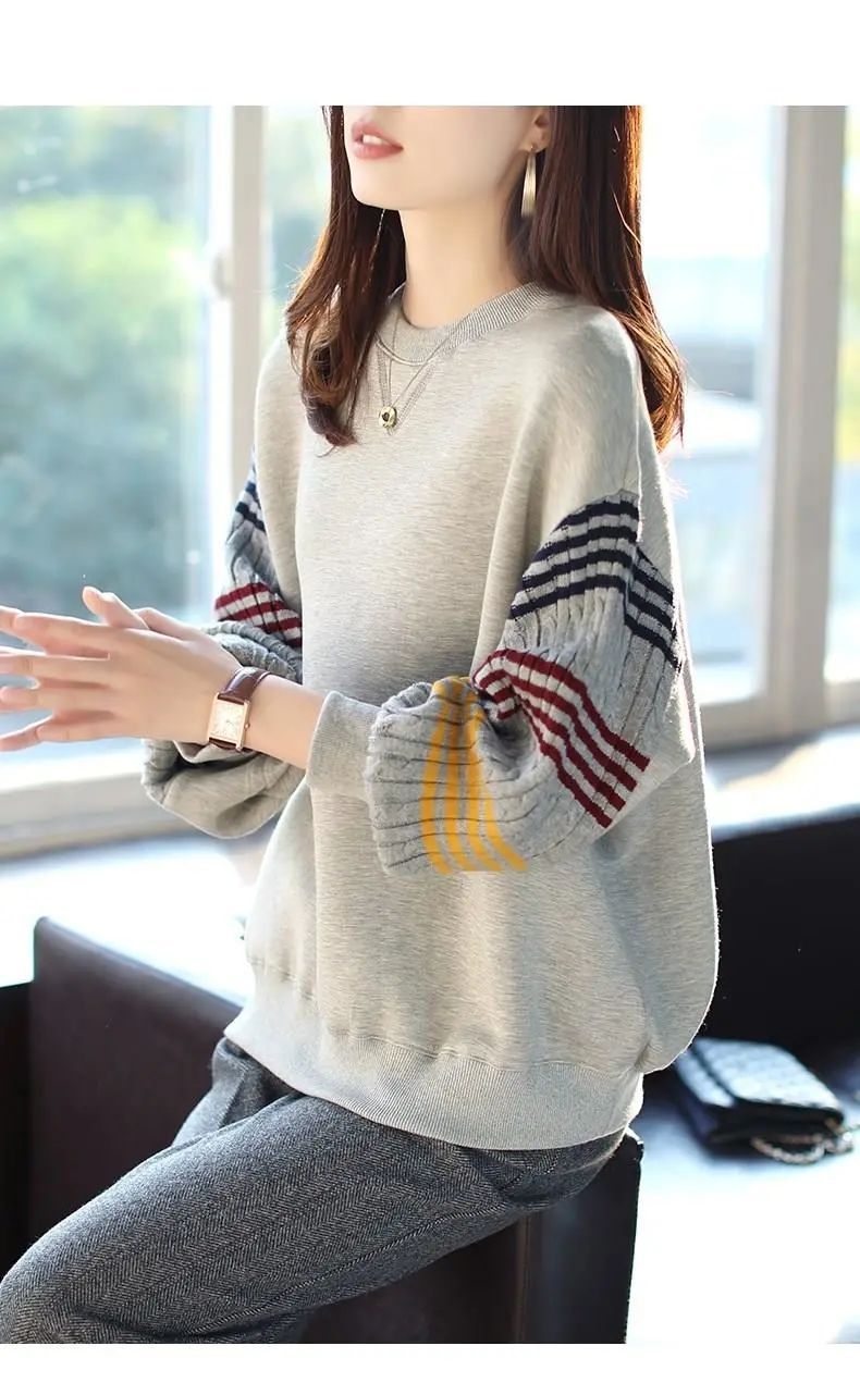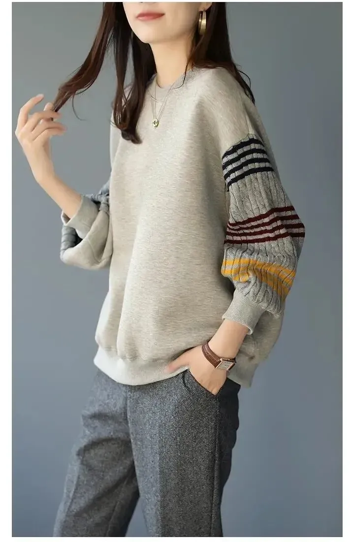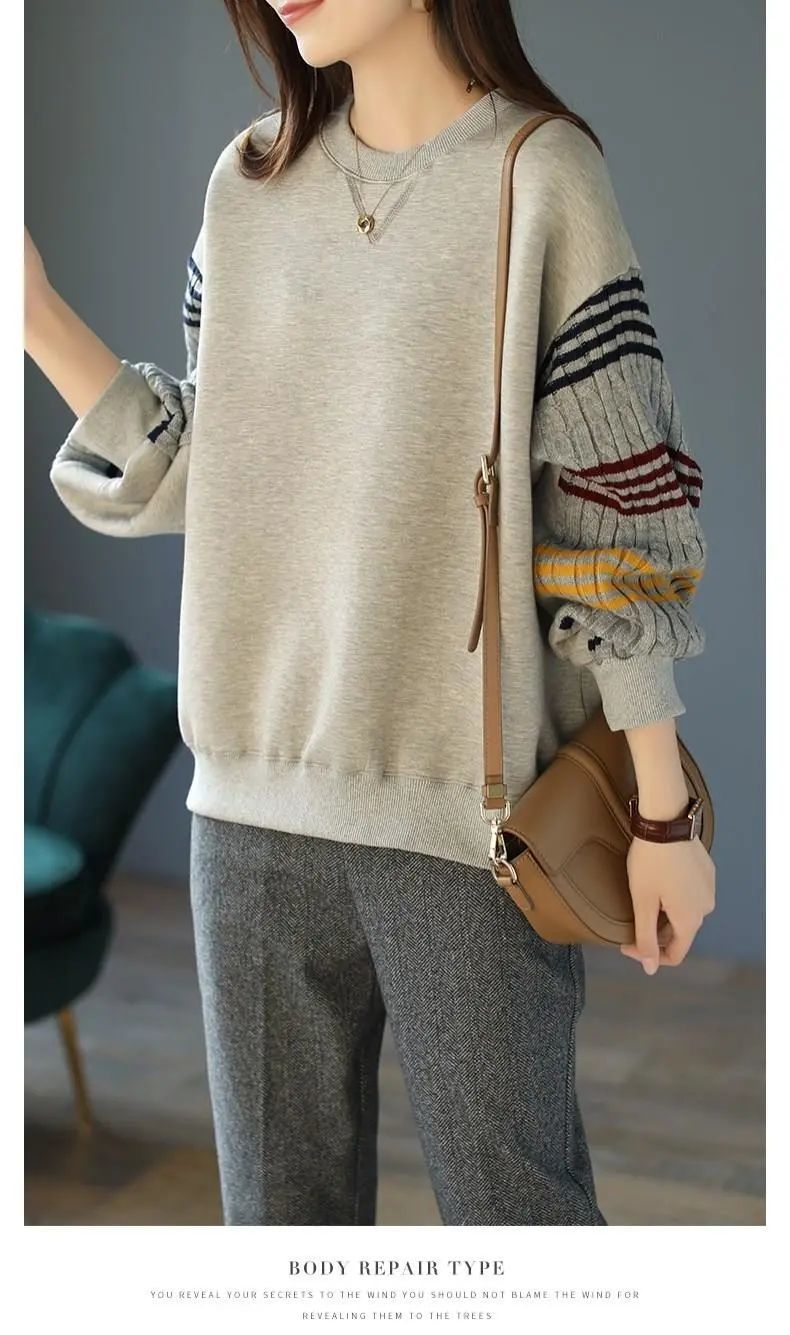 慵懶風寬鬆氣質休閒拼接套頭圓領衛衣-Cicimode