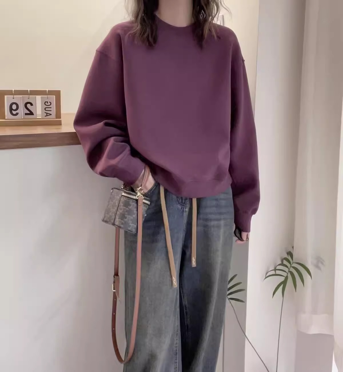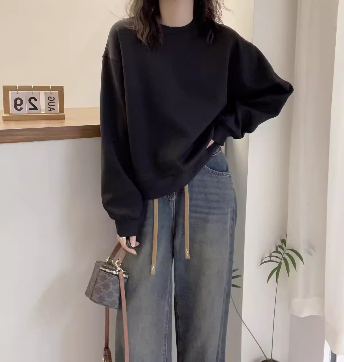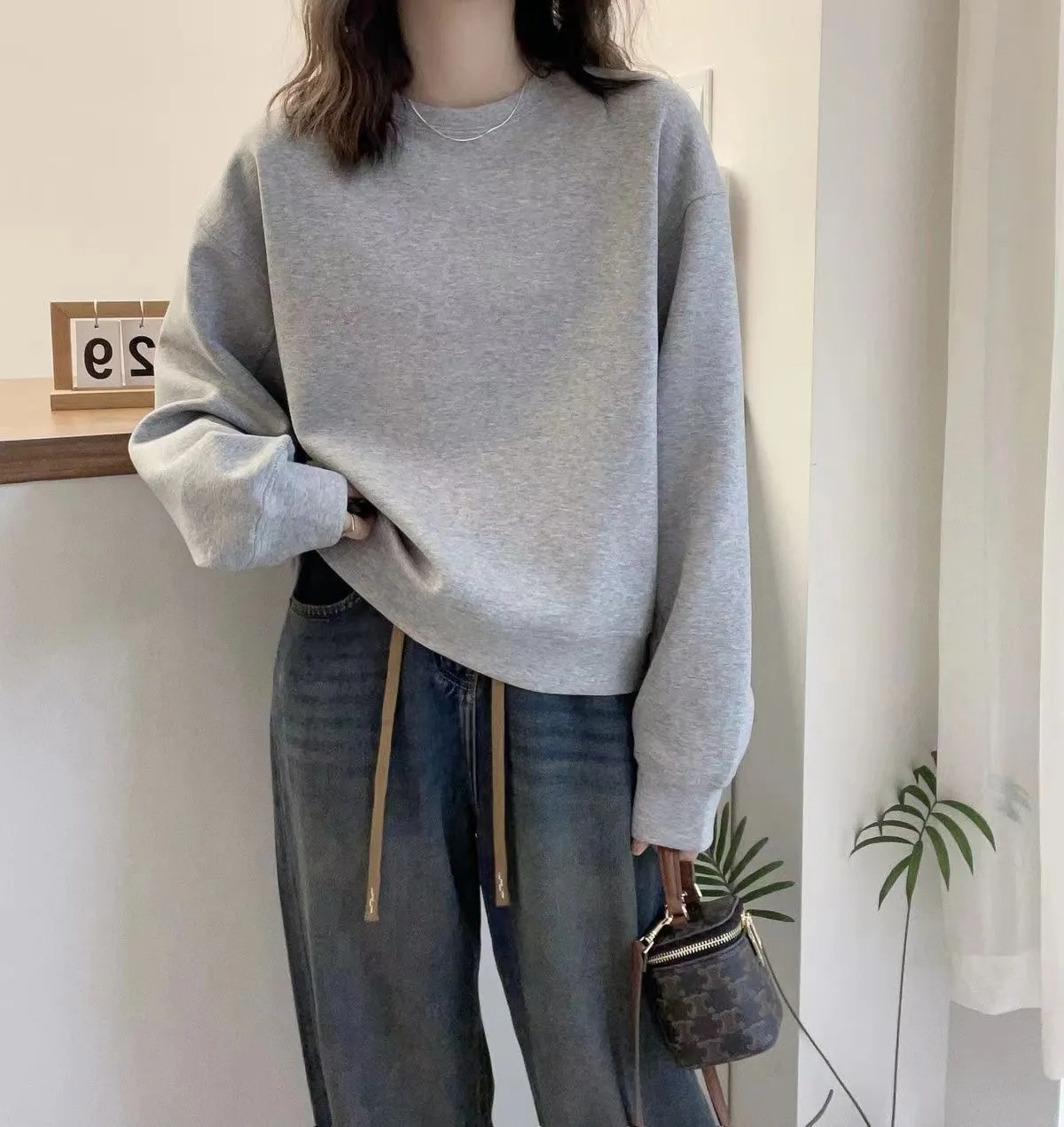 簡約寬鬆百搭休閒純色圓領衛衣