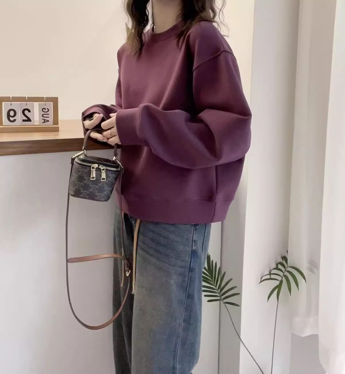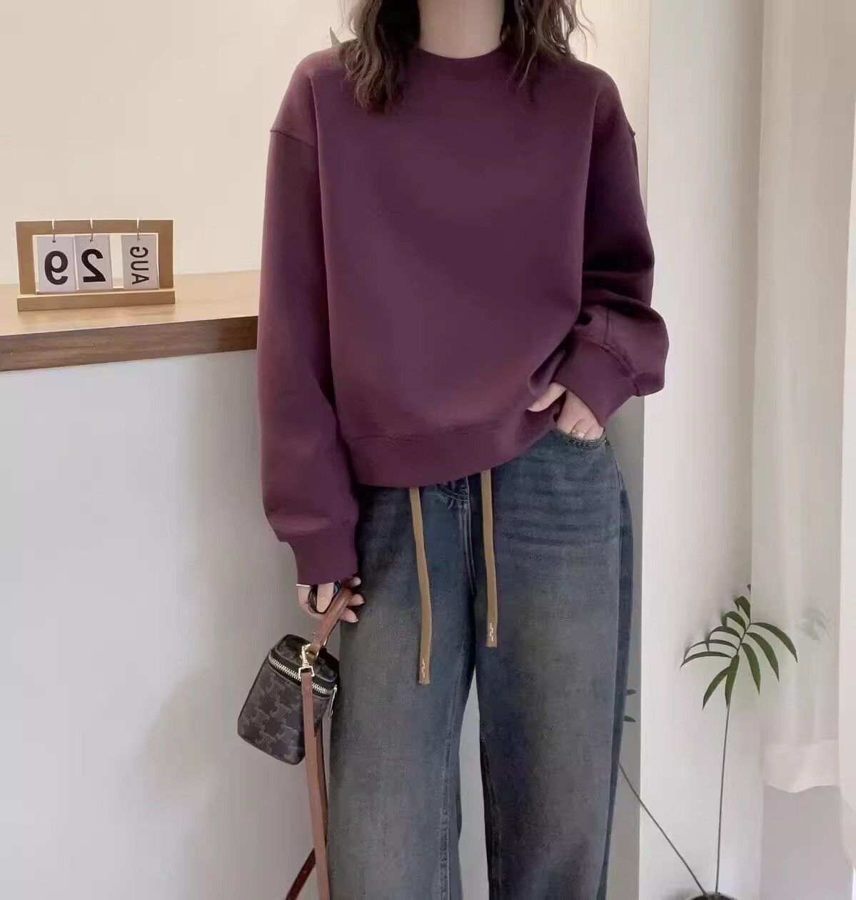 簡約寬鬆百搭休閒純色圓領衛衣-Cicimode