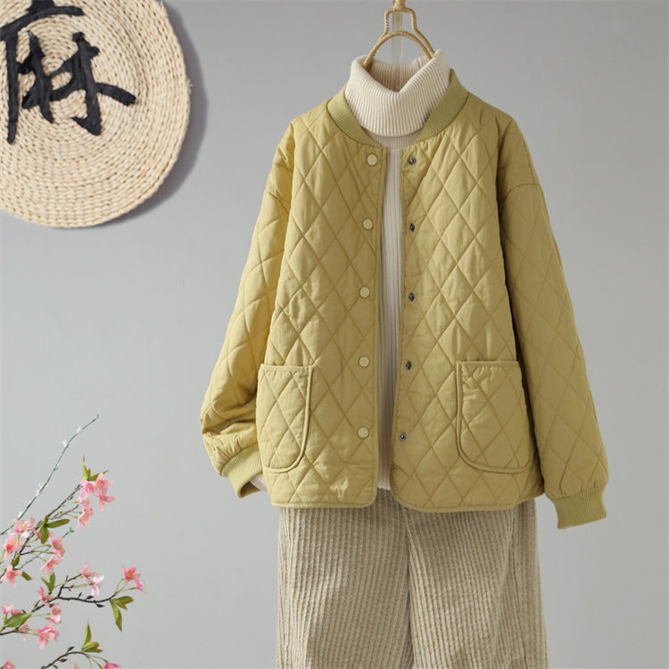 復古圓領寬鬆單排扣顯瘦夾棉保暖棉衣