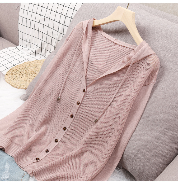 連帽冰絲寬鬆薄款鏤空防曬針織開衫