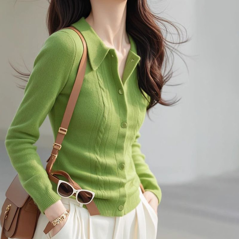 法式氣質百搭翻領顯瘦針織開衫-Cicimode