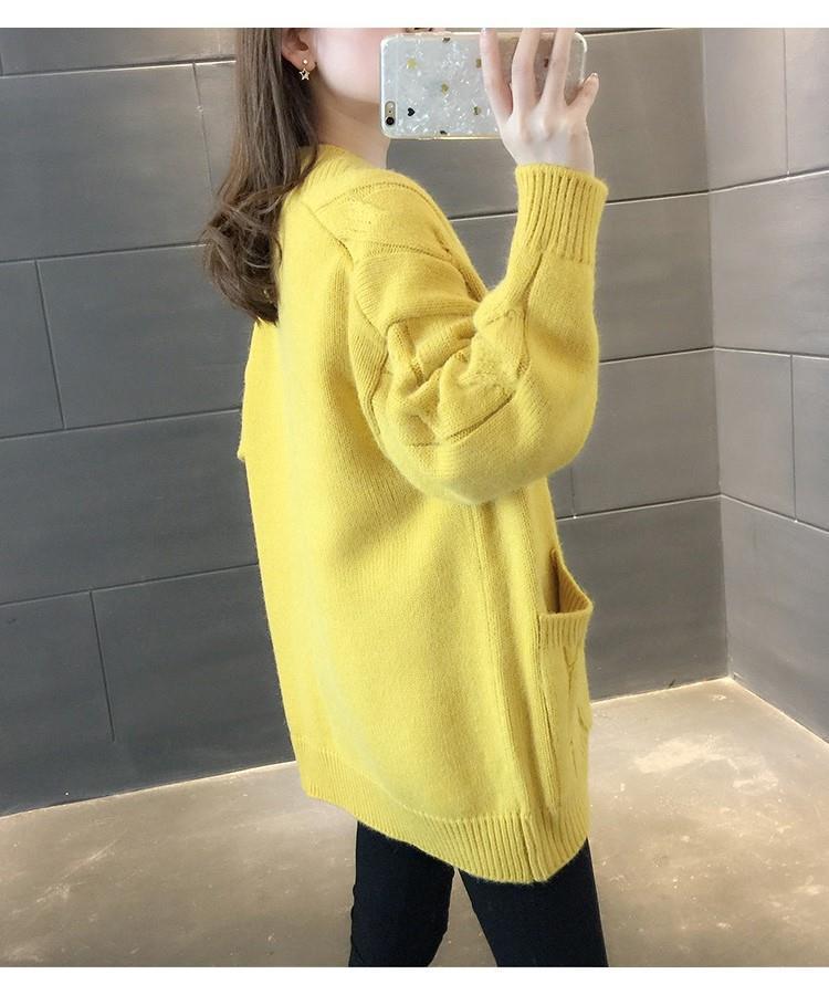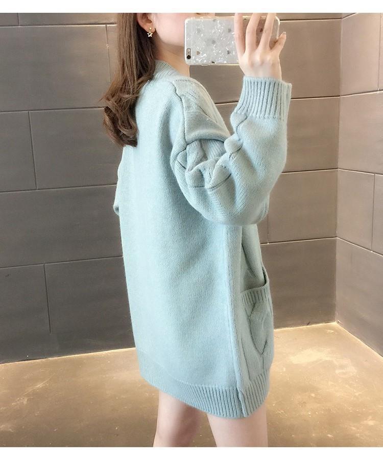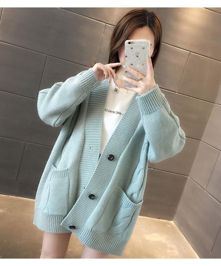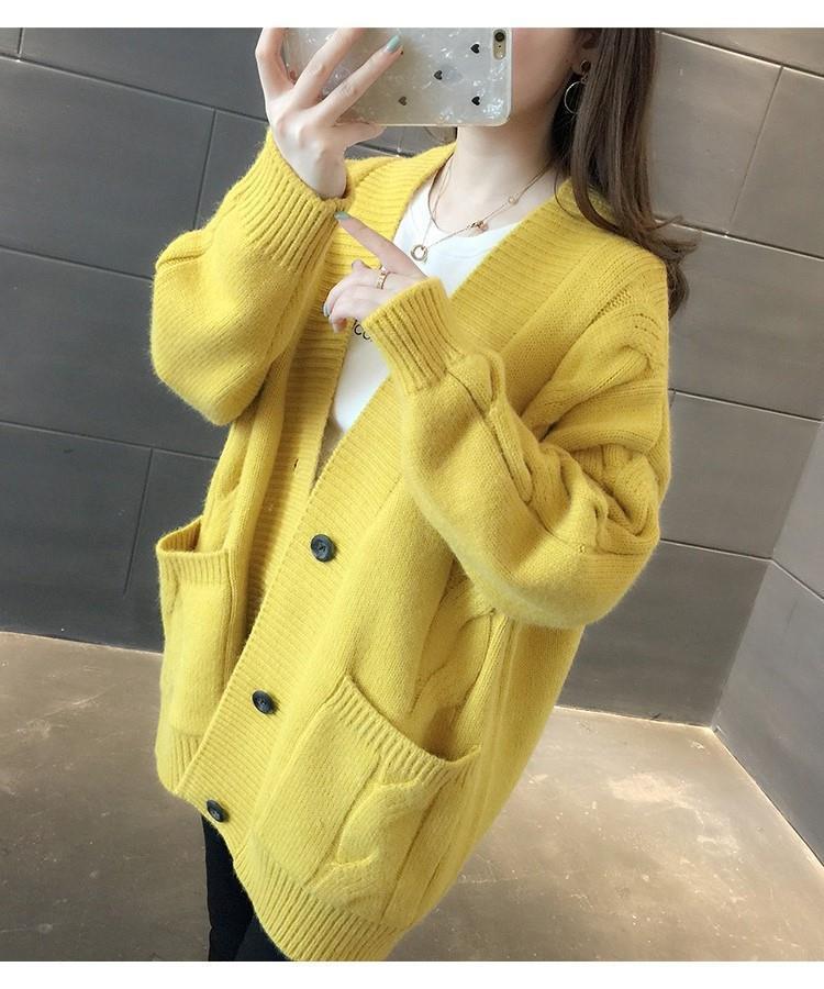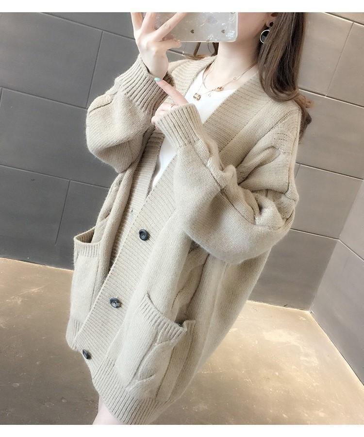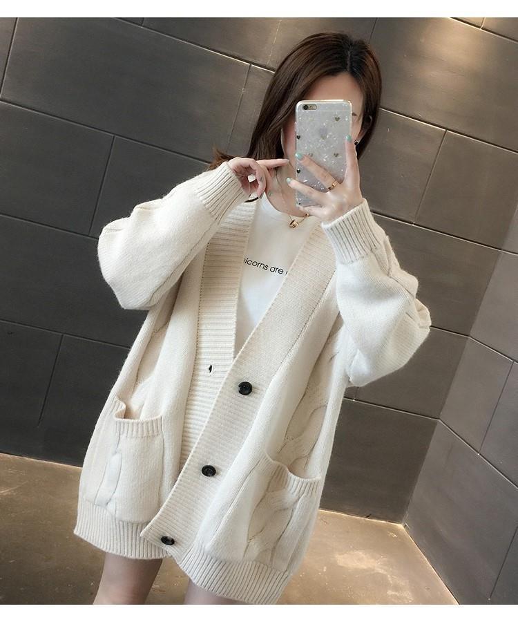 慵懶風V領麻花針織開衫寬鬆百搭毛衣外套-Cicimode