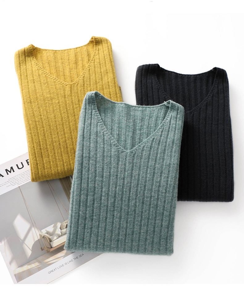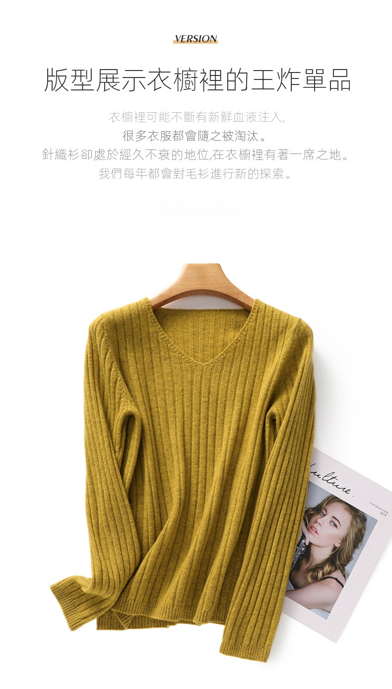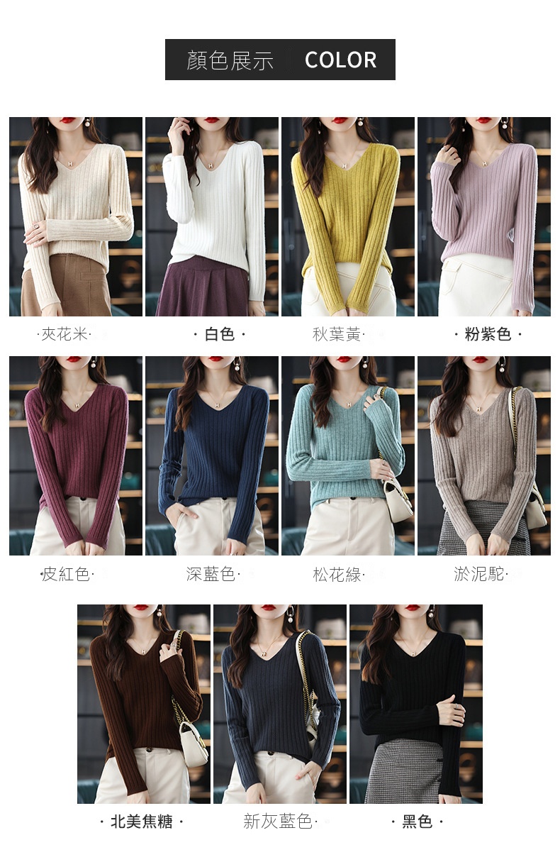 10色百搭純色V領套頭保暖內搭針織長袖