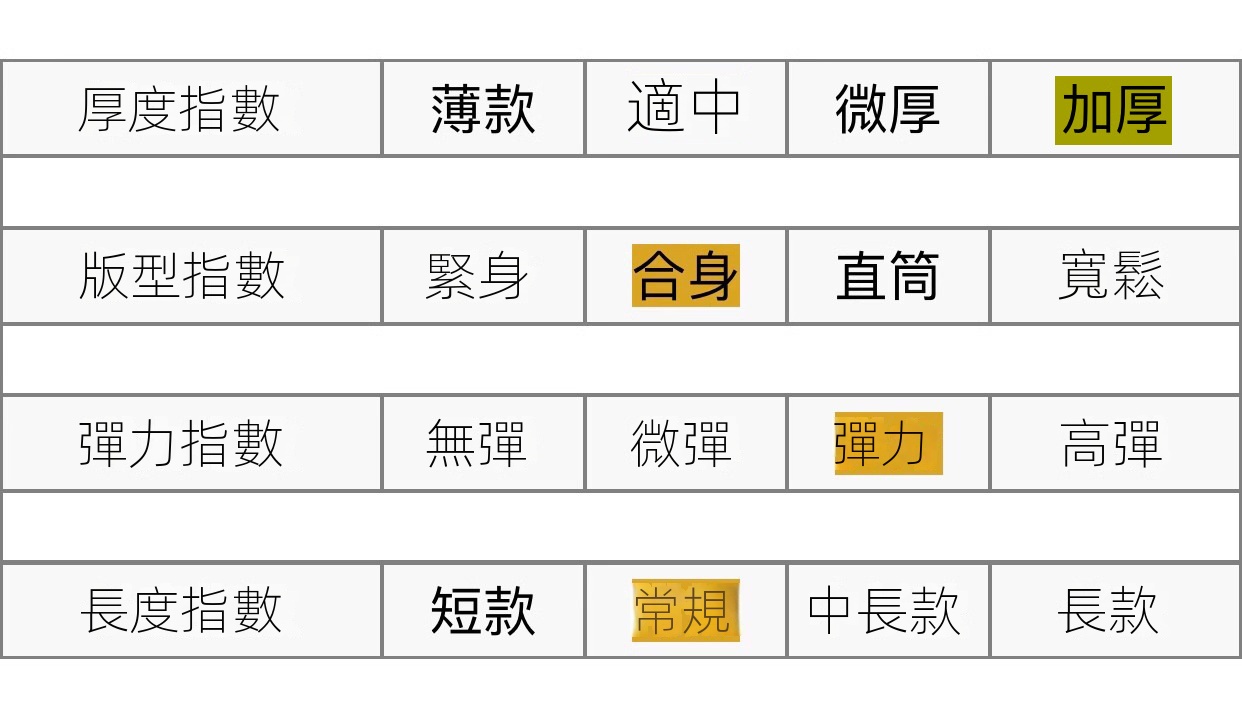 版型:修身型
