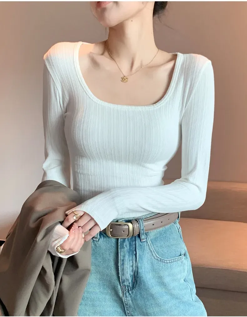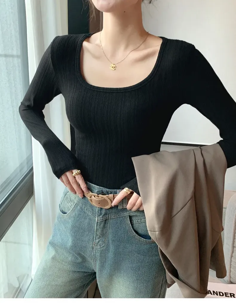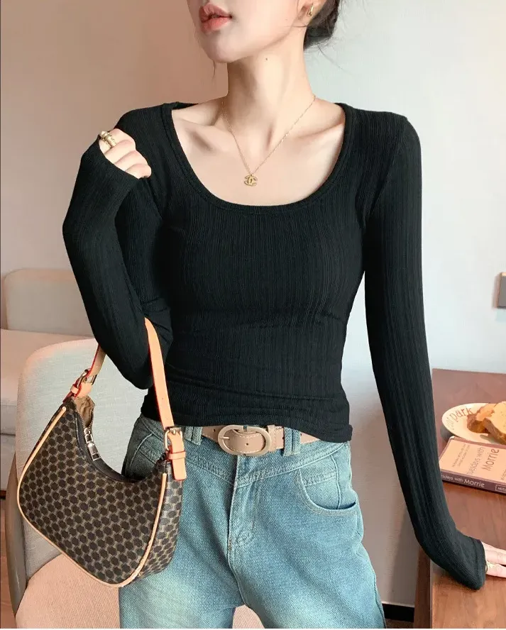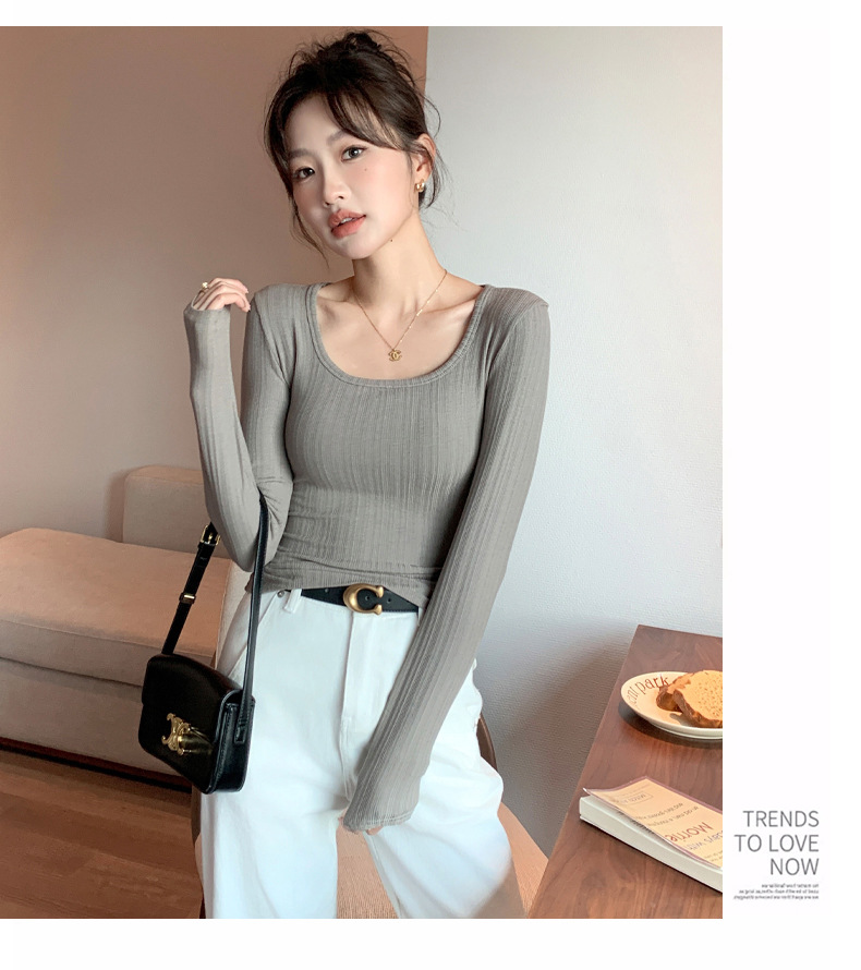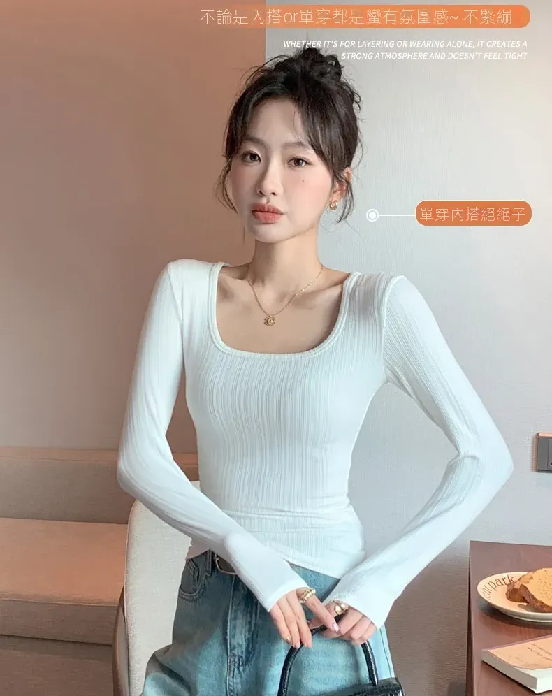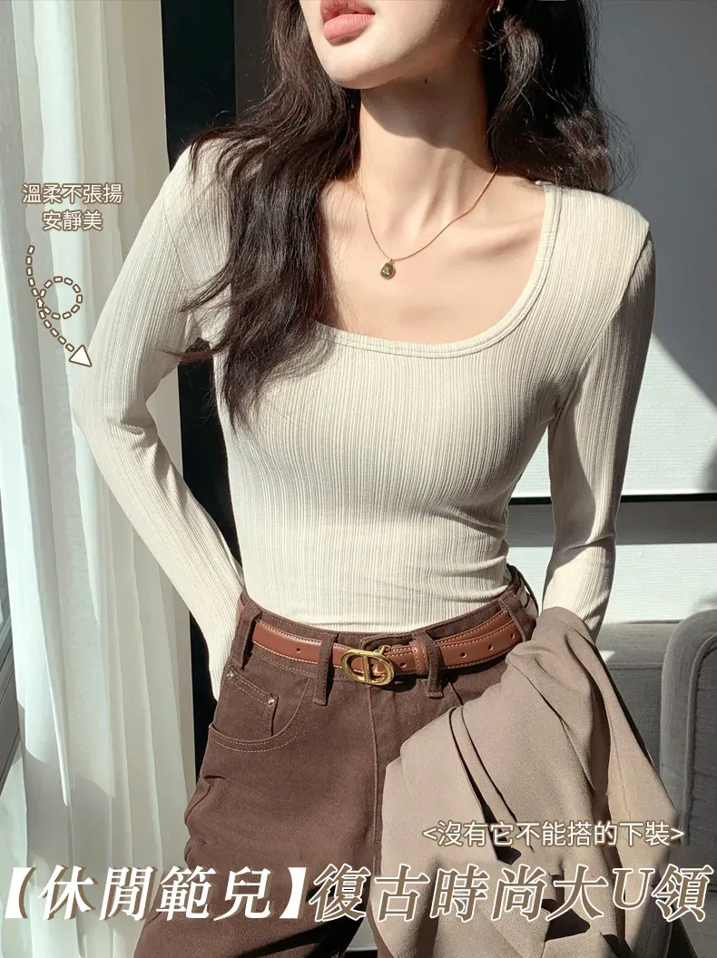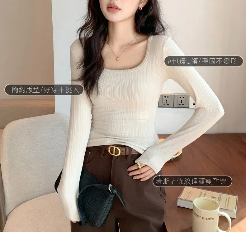 款式:套頭袖長:長袖工藝:壓皺版型:修身型衣長:普通領型:U字領風格類型:日韓休閒
