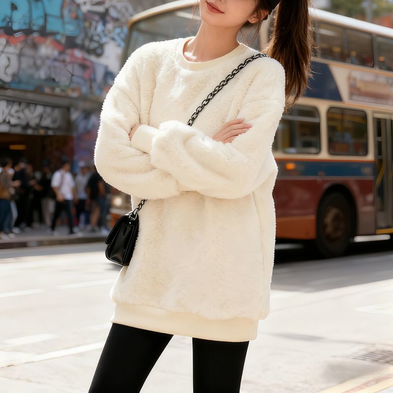 韓版寬鬆百搭刷毛加厚圓領珊瑚絨長袖-Cicimode