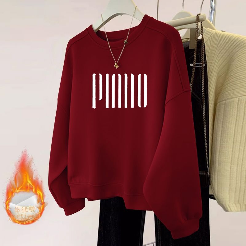 薄款/刷毛休閒圓領打底高檔寬鬆顯瘦保暖長袖T恤