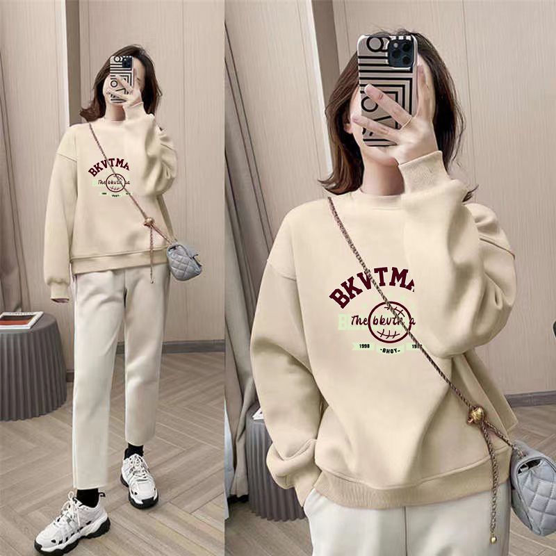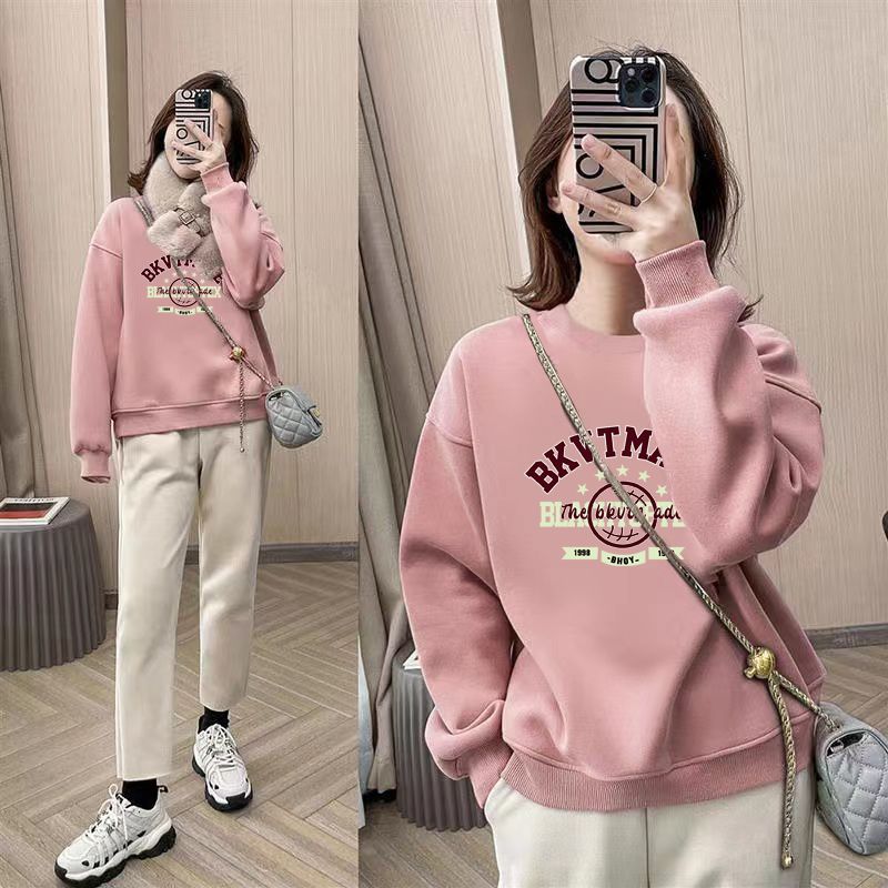 薄款oversize寬鬆印花圓領洋氣大碼長袖T恤