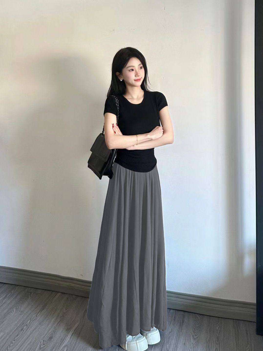 【單件/套裝】法式慵懶風修身短袖T恤+a字高腰半身長裙兩件套裝