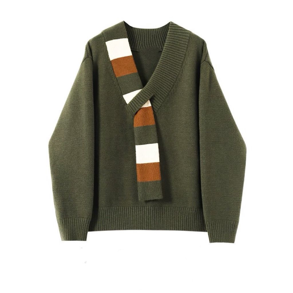 【單件/套裝】韓系減齡V領針織衫毛衣+高腰顯瘦闊腿牛仔褲兩件套
