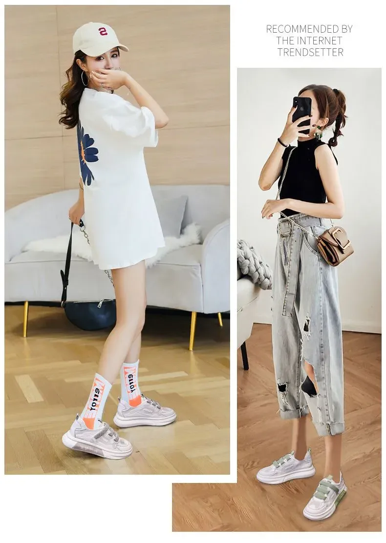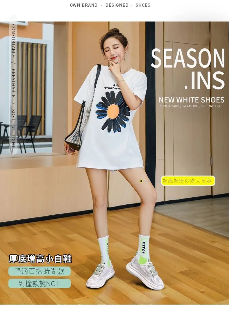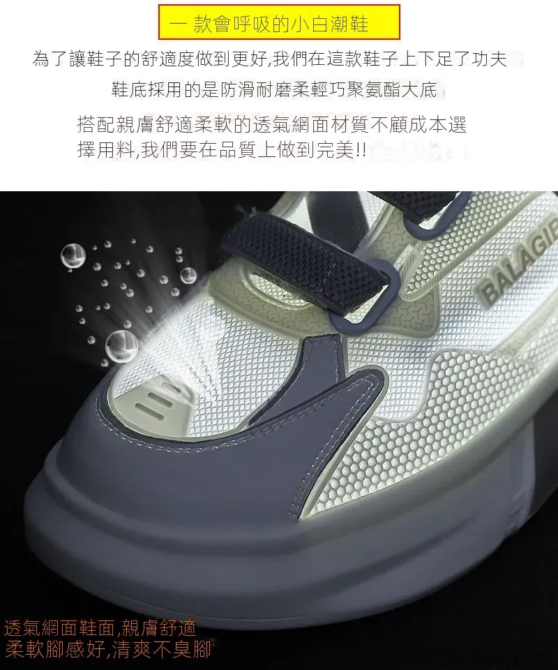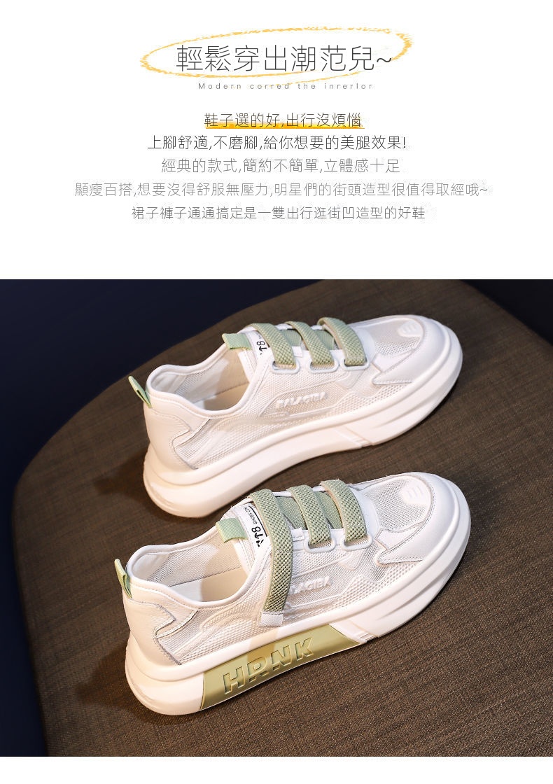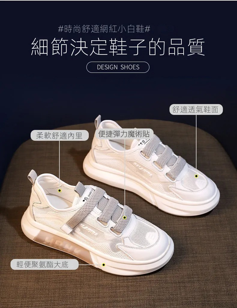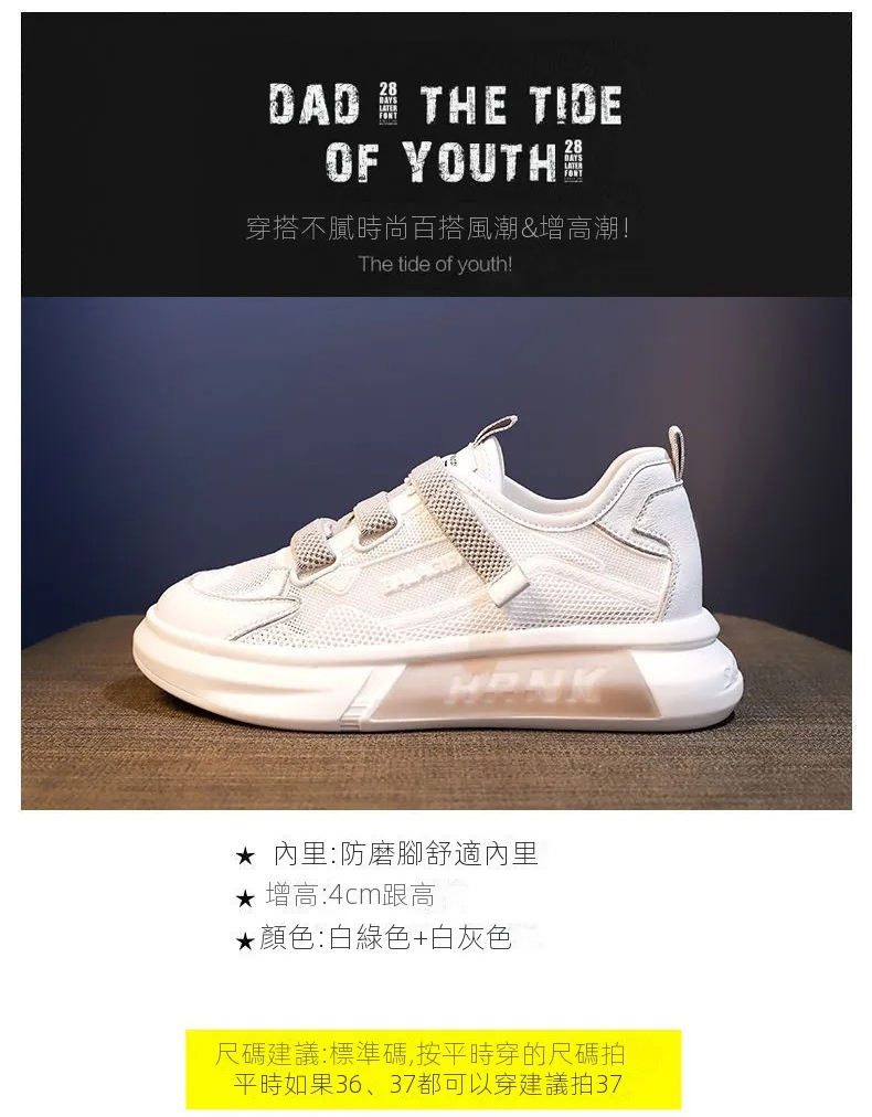 百搭網面透氣魔術貼增高運動休閒鞋-Cicimode