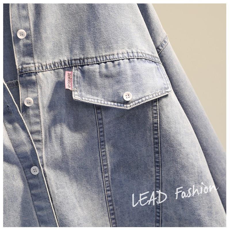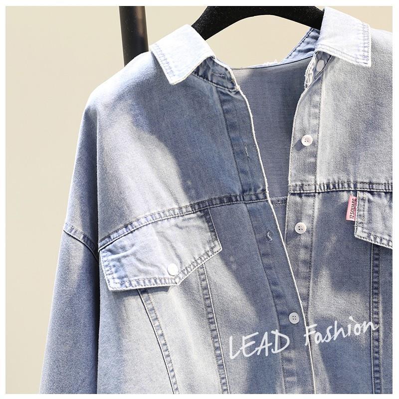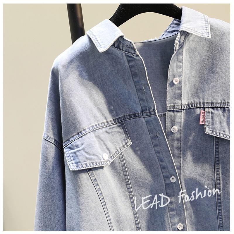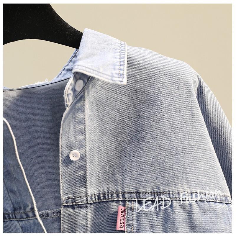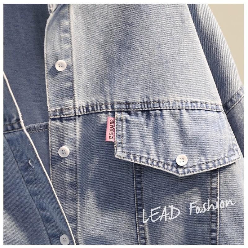 時尚百搭假兩件牛仔拼接豎條紋襯衫