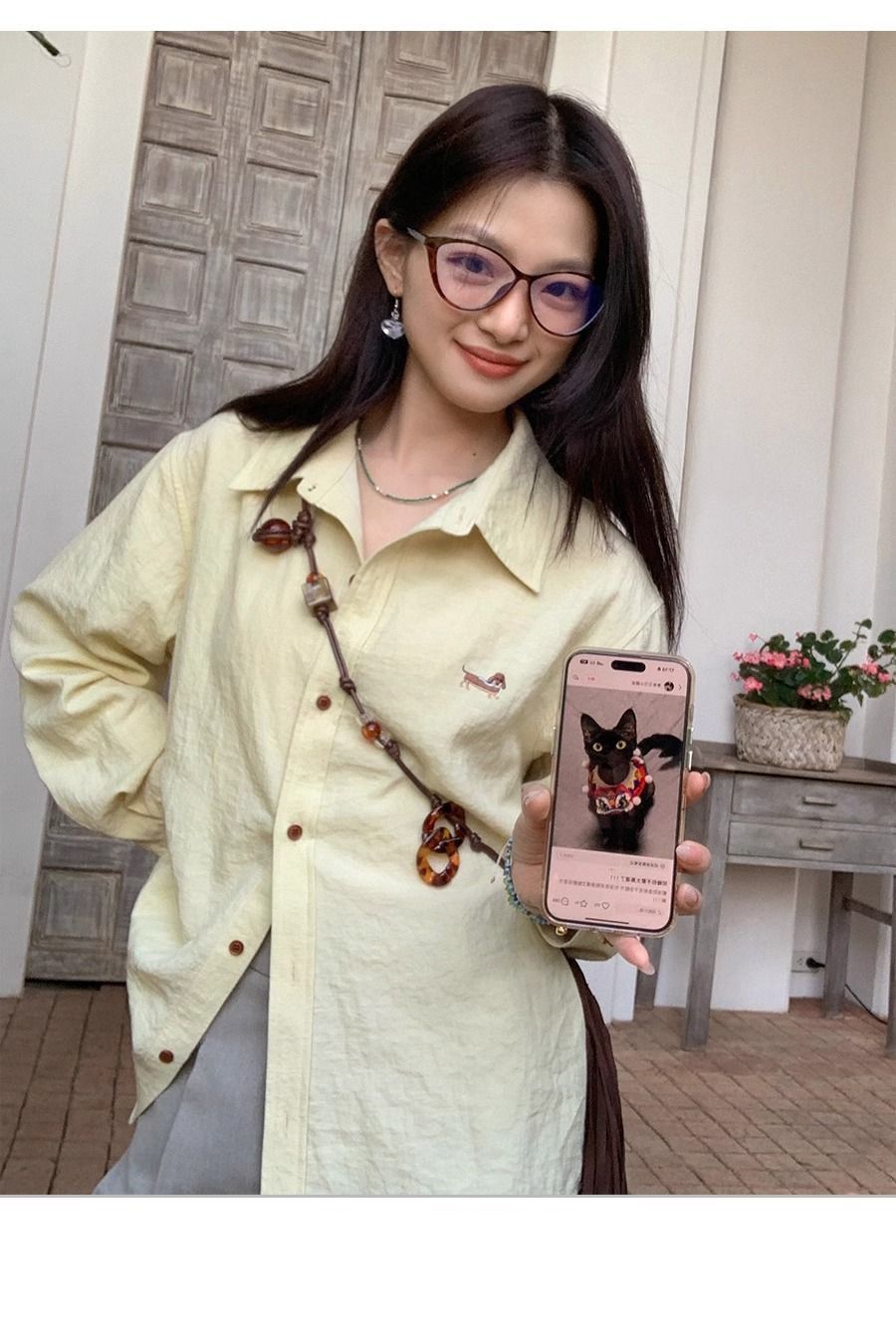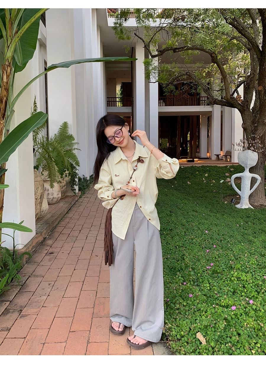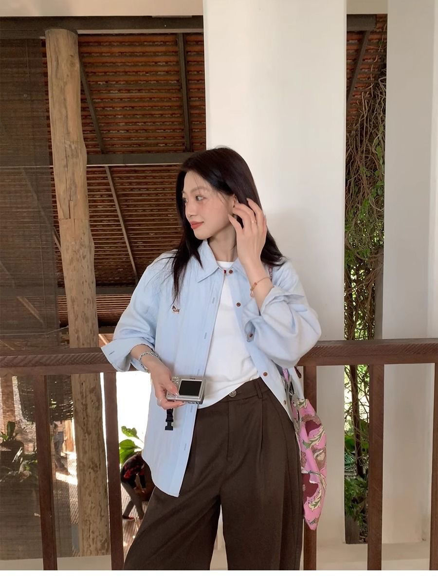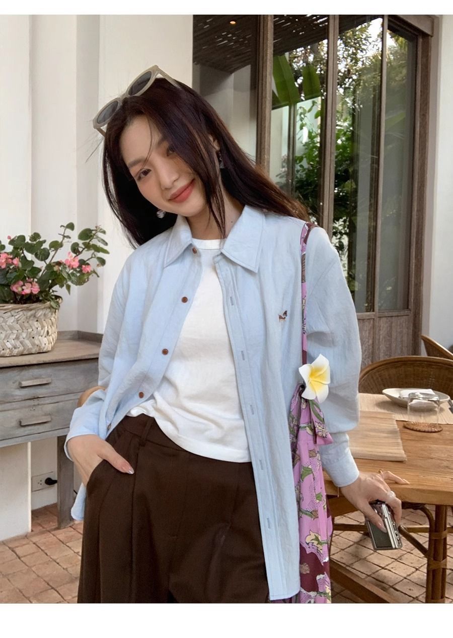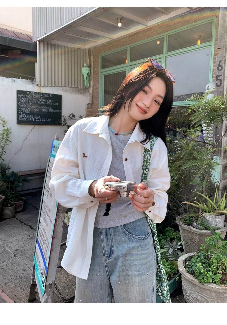 刺繡設計慵懶寬鬆休閒百搭氣質長袖襯衫