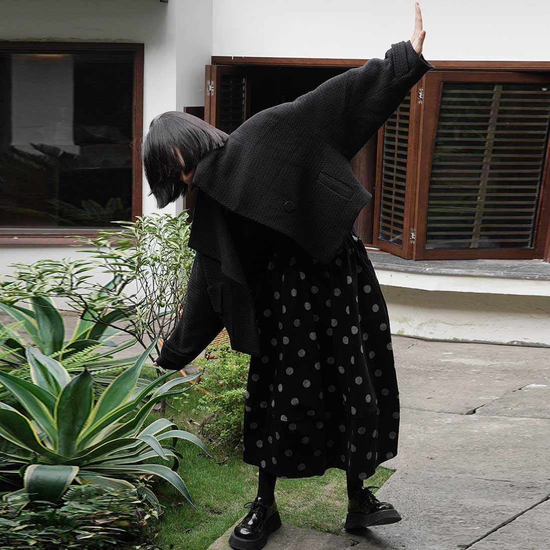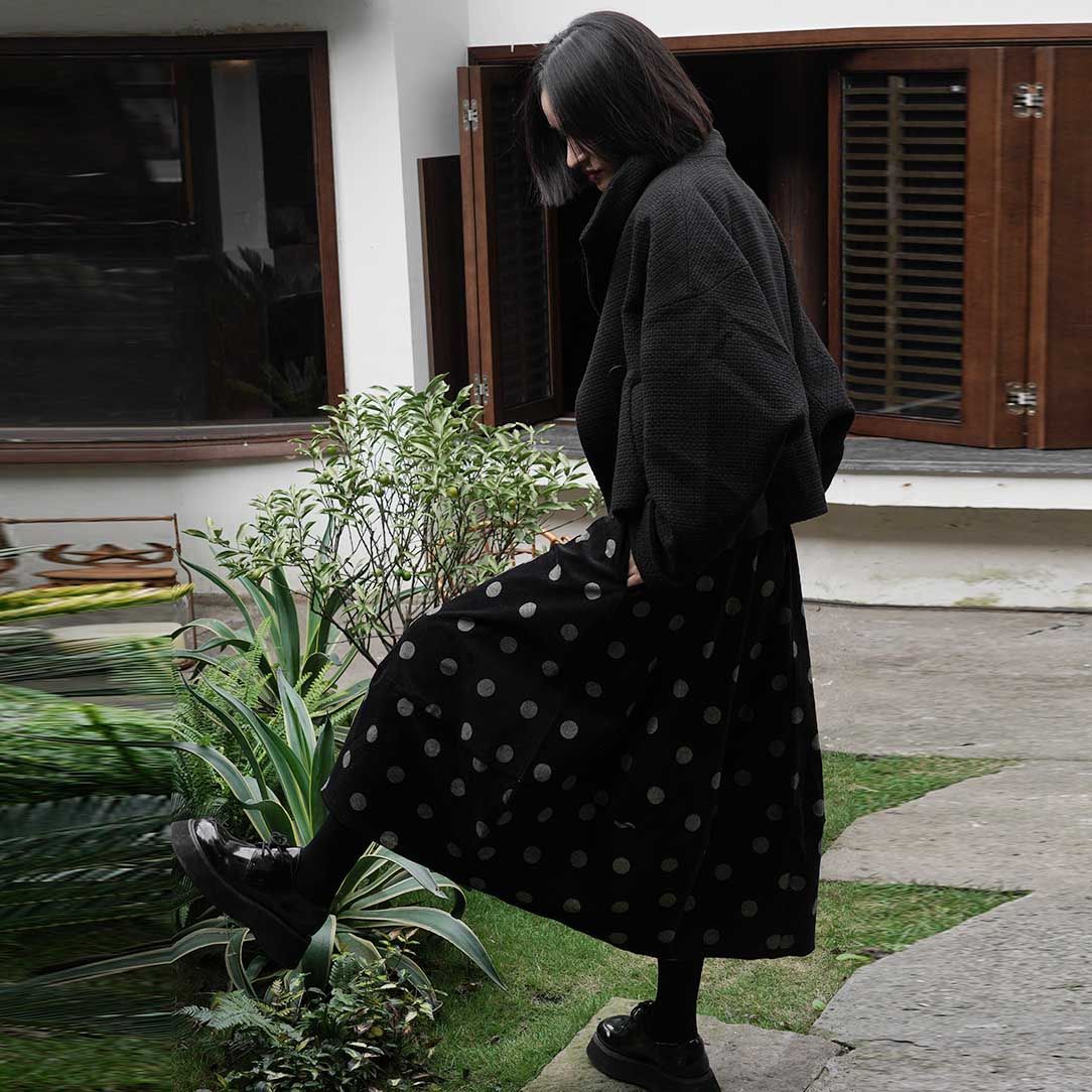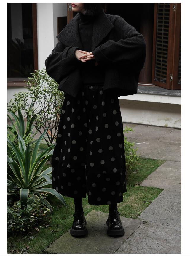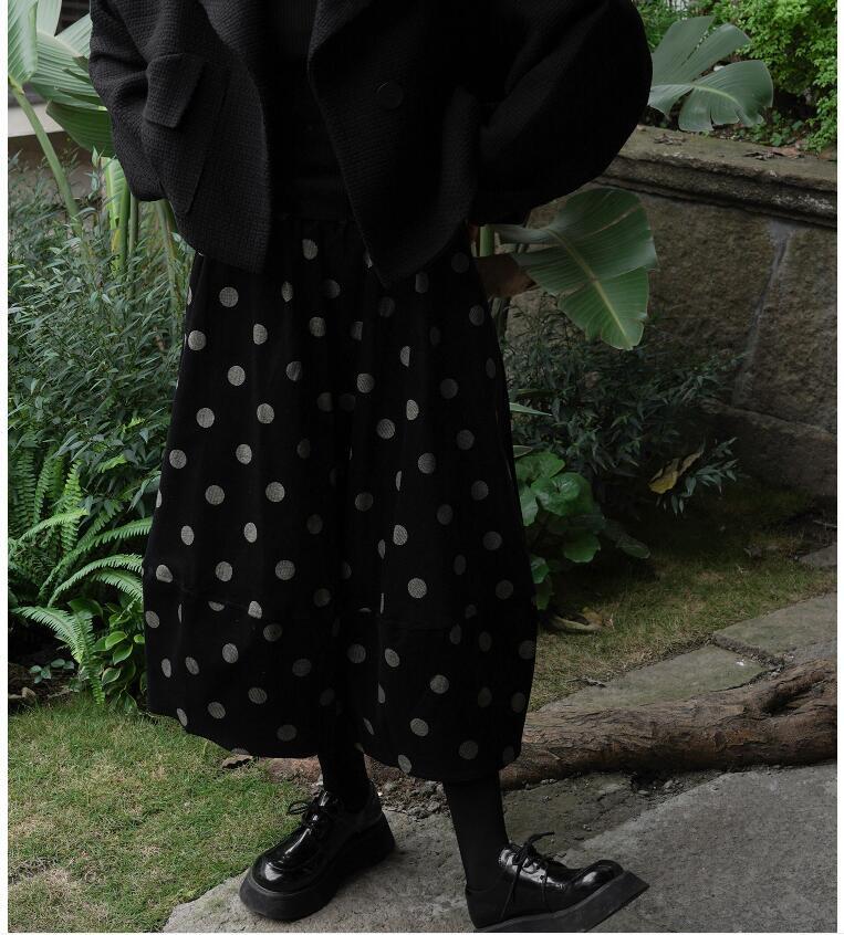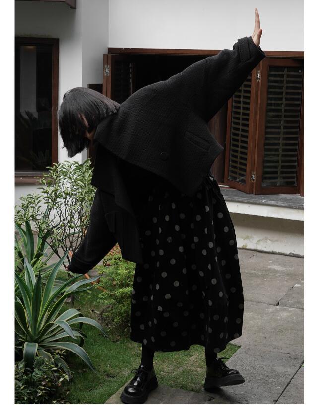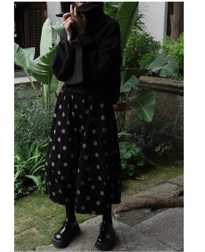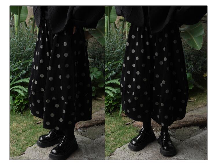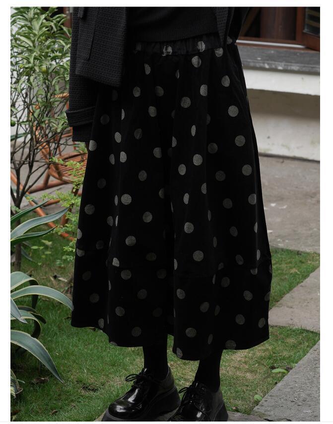 日系減齡甜美少女感波點中長款花苞半身裙