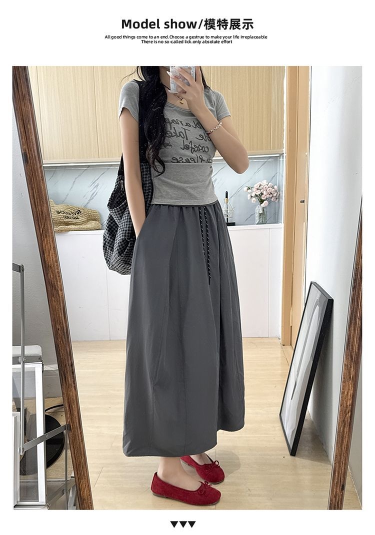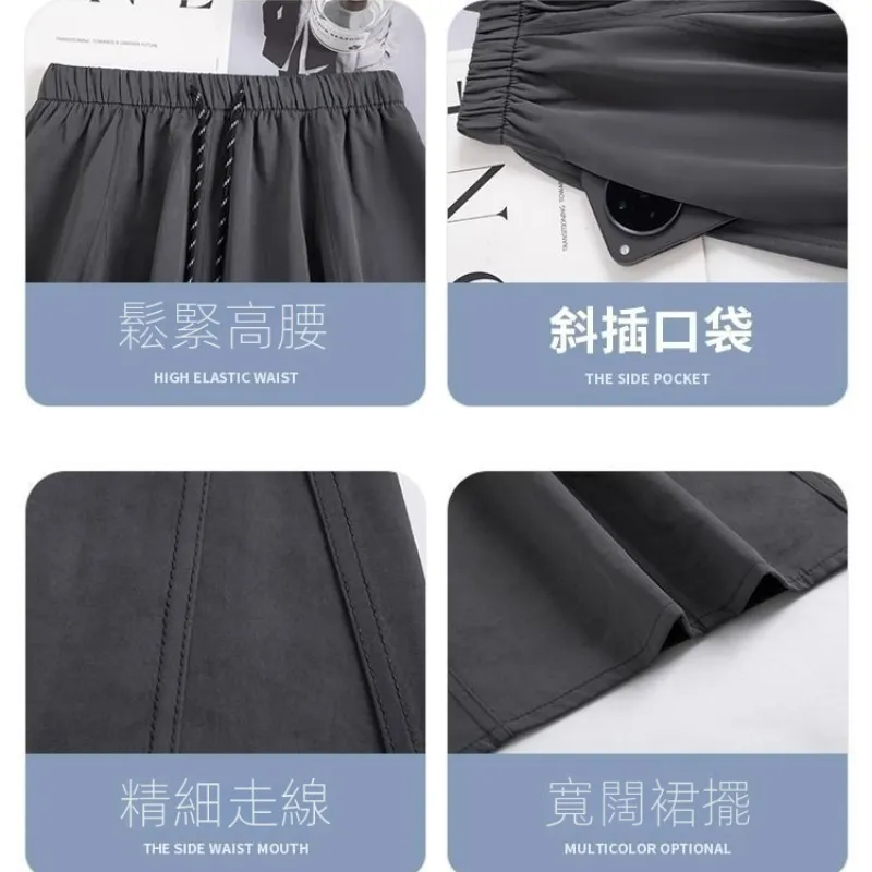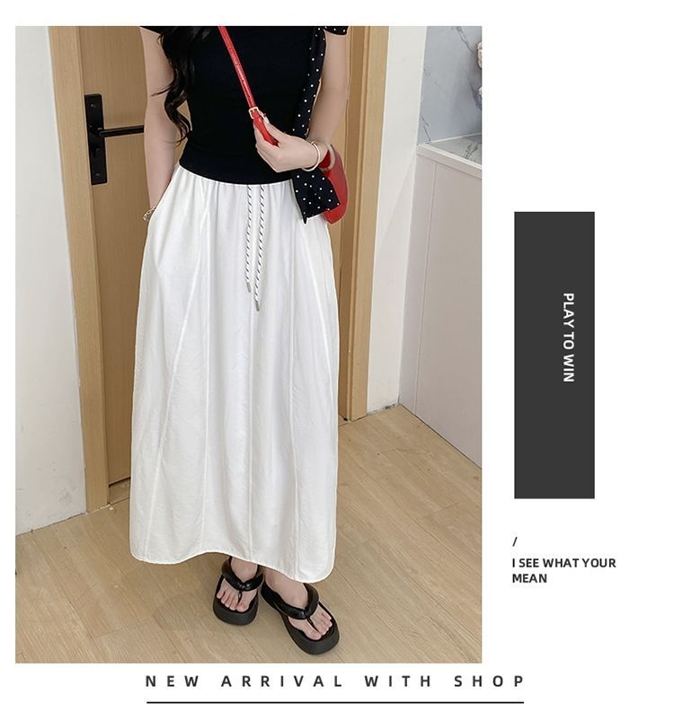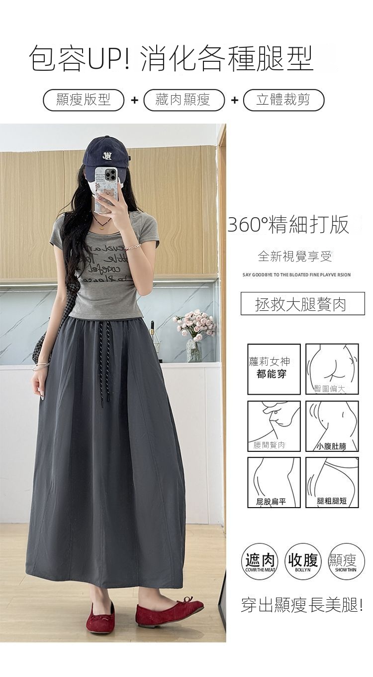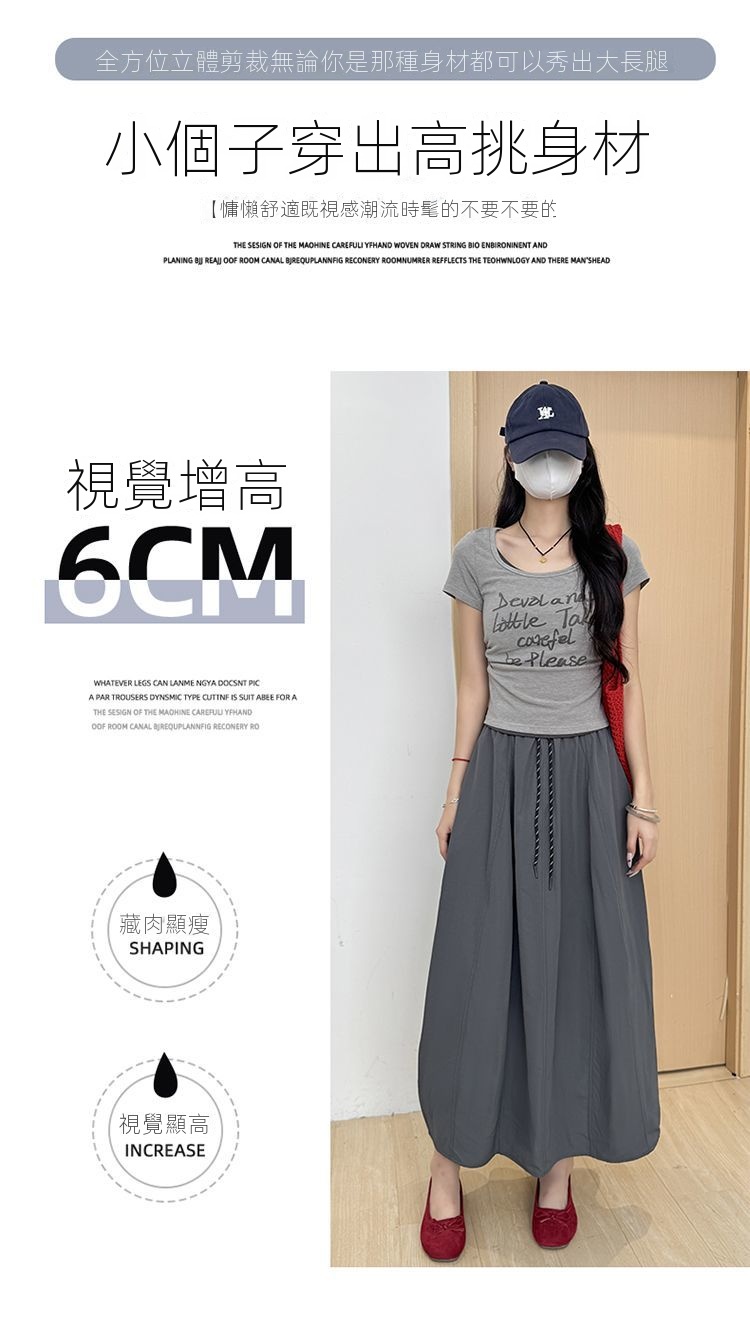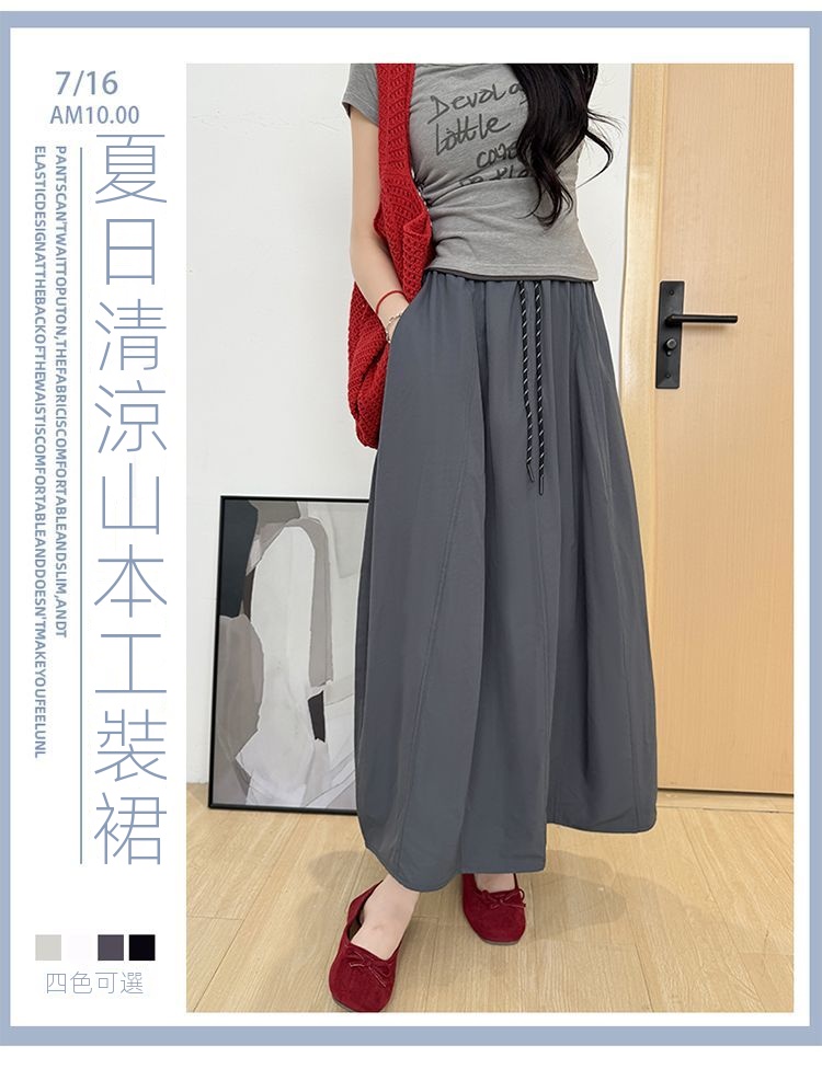 冰絲工裝高腰小個子寬鬆系帶A字半身裙-Cicimode