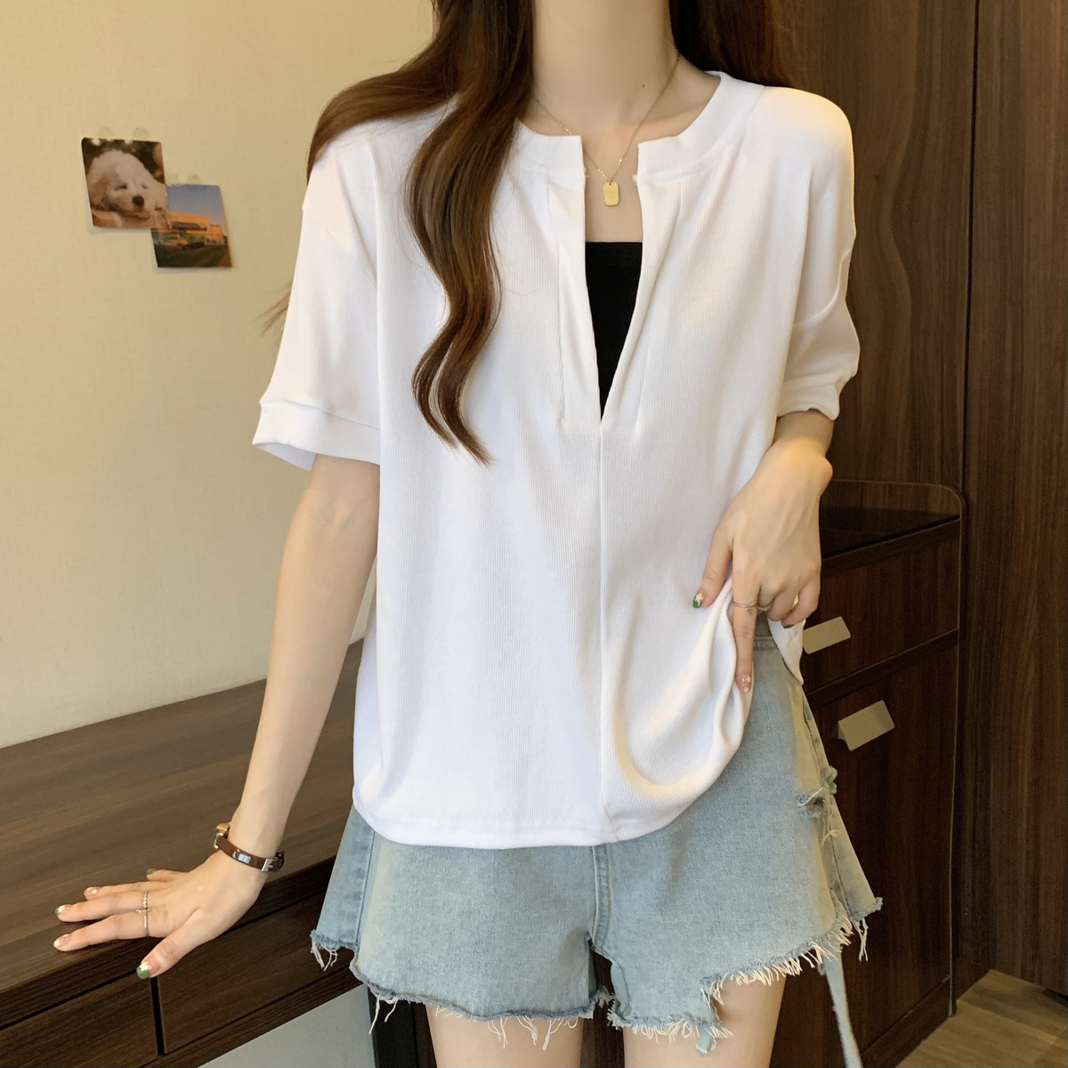 Ins潮寬鬆顯瘦百搭小眾遮肚假兩件短袖