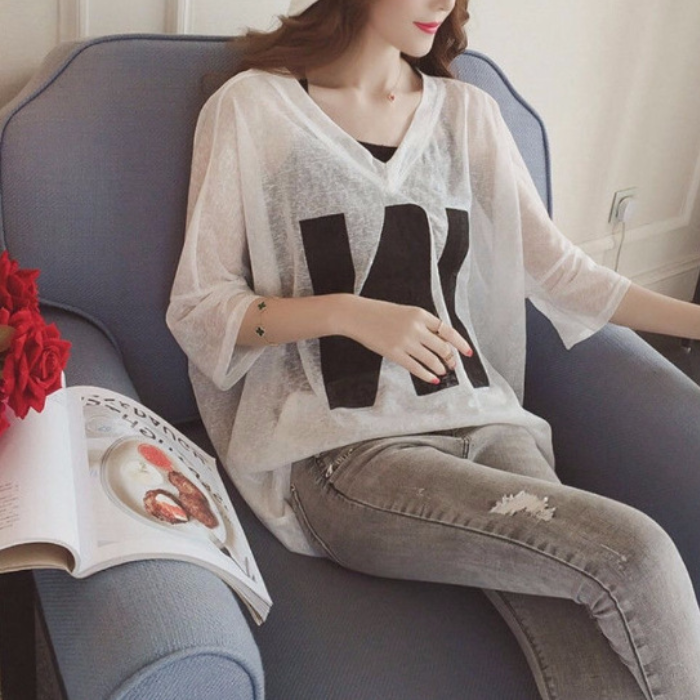 圖案:字母/數字/文字款式:兩件套袖長:短袖工藝:拼貼/拼接版型:寬鬆型領型:V字領袖型:蝙蝠袖風格類型:日韓休閒