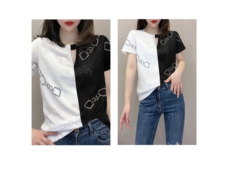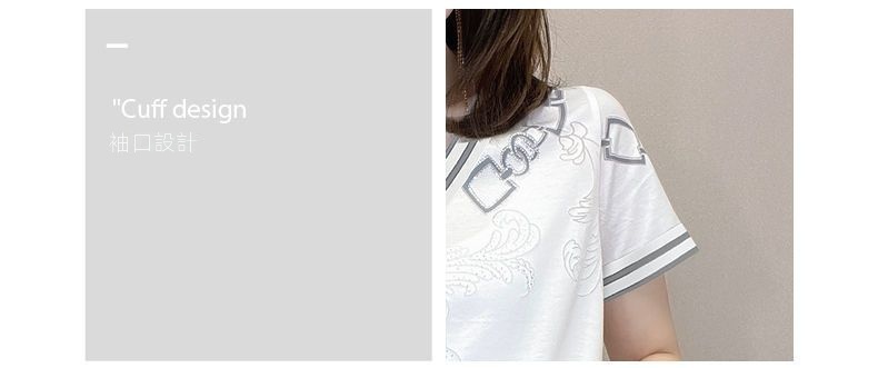 休閒設計感拼色短款印花圓領短袖-Cicimode