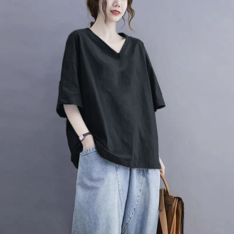 美式慵懶風設計感小眾純棉V領短袖t恤-Cicimode