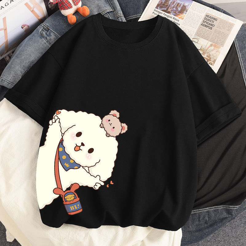 多色純棉可爱印花宽松圆领短袖T恤-Cicimode