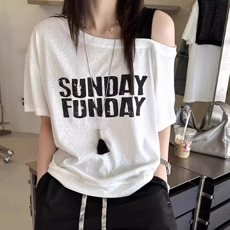 獨特的斜肩字母印花 充滿個性又不失優雅