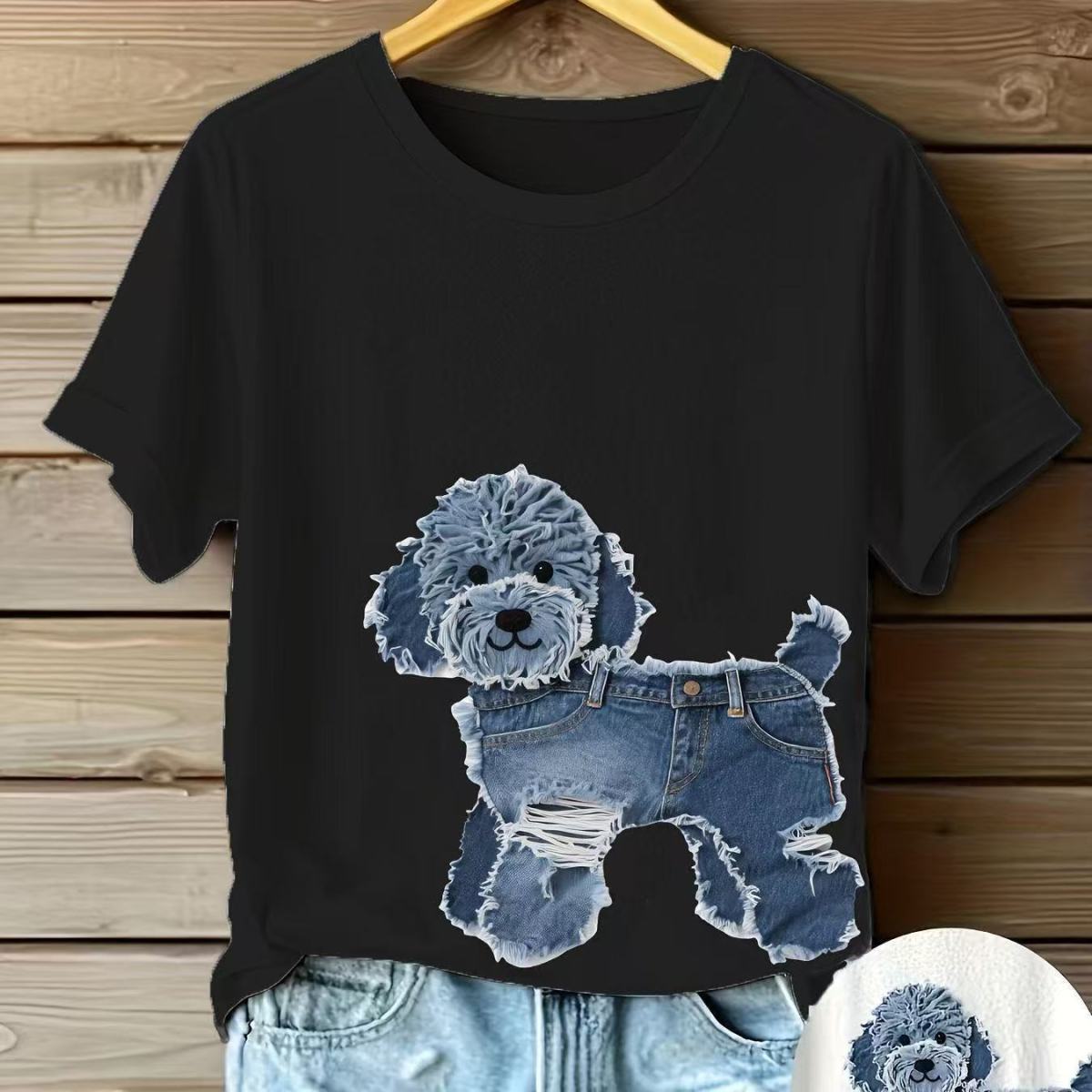 顯瘦氣質設計感T恤拼接牛仔寬鬆洋裝