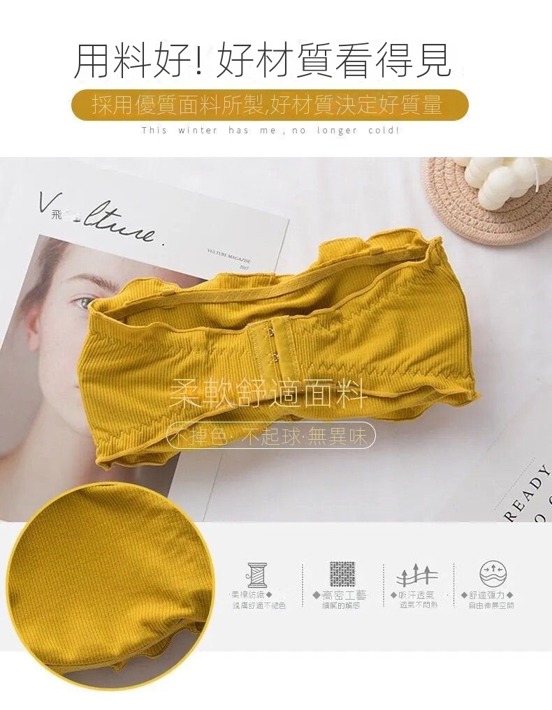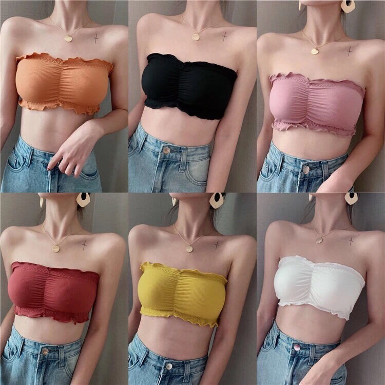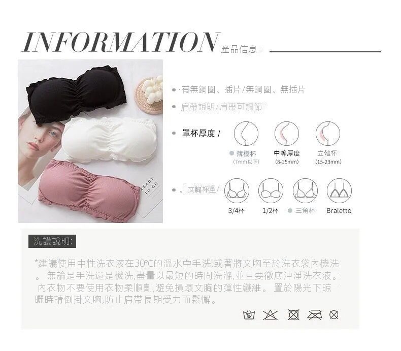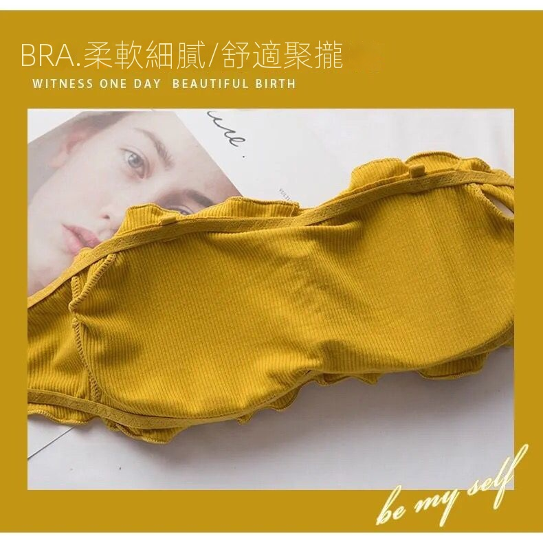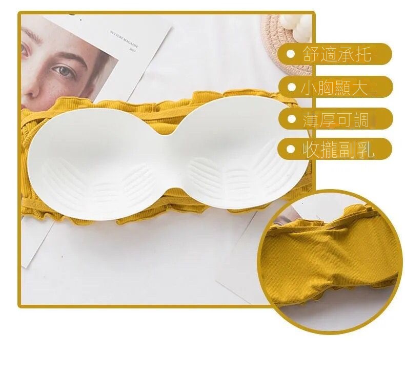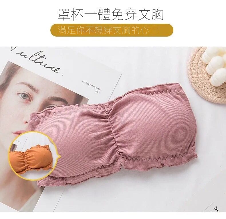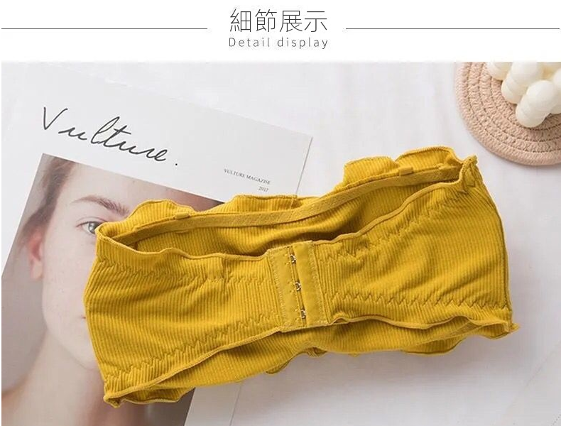 韓版抹胸無肩帶純色木耳邊美背內衣