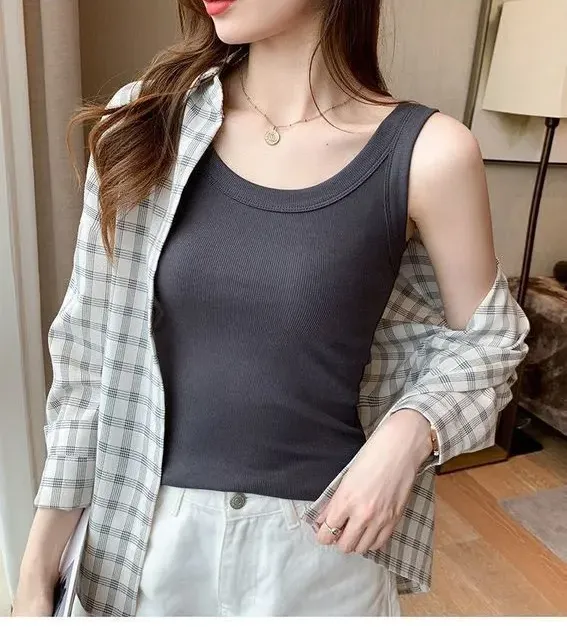 螺紋防走光無袖薄款內搭打底吊帶背心