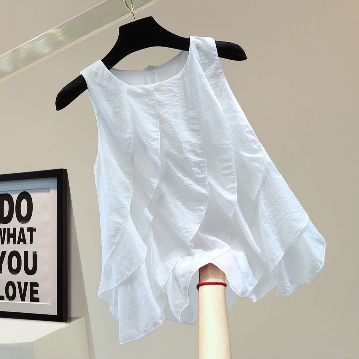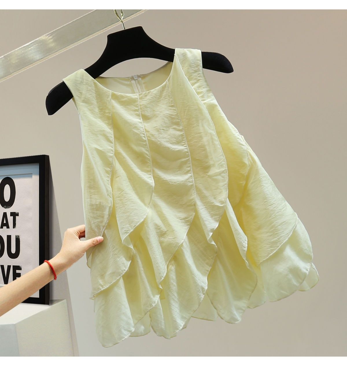 荷葉邊拼接寬鬆顯瘦純色圓領拉鍊背心-Cicimode
