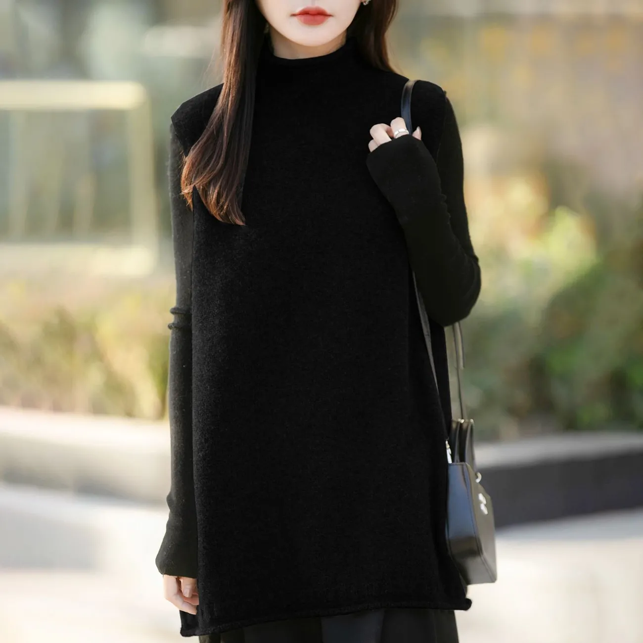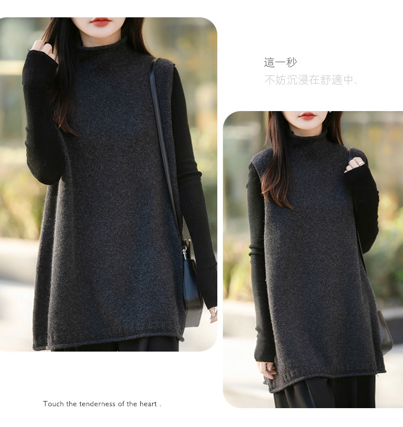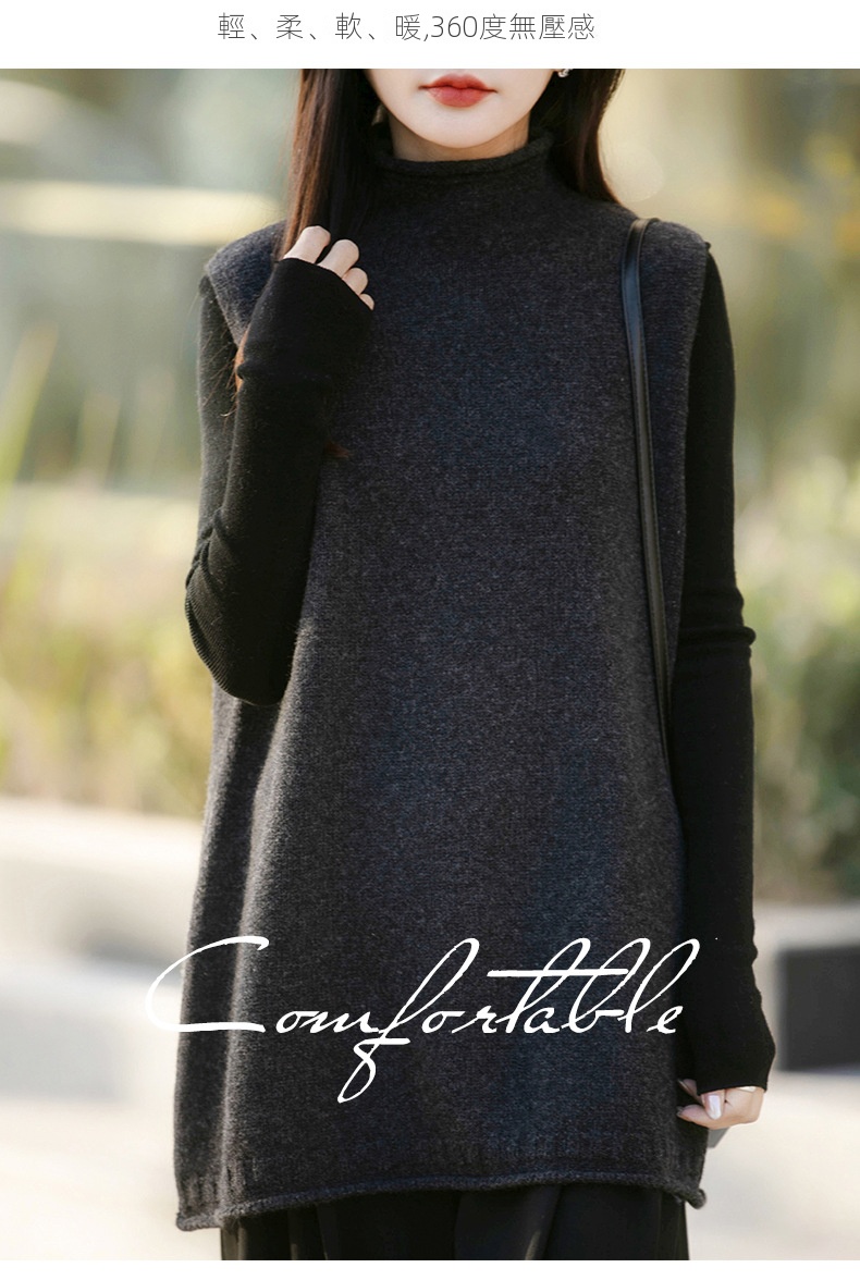 半高領中長版寬鬆背心坎肩羊毛針織馬甲